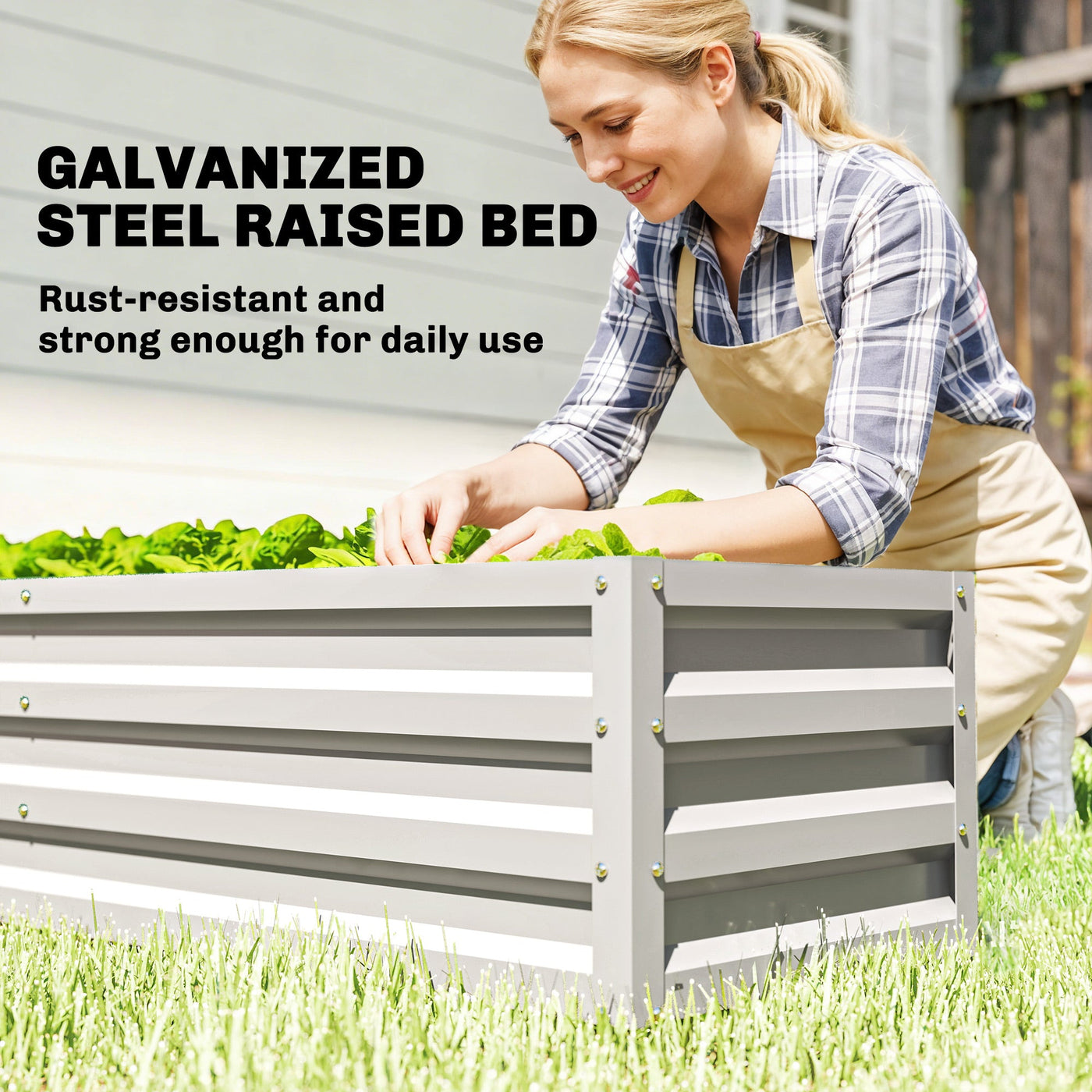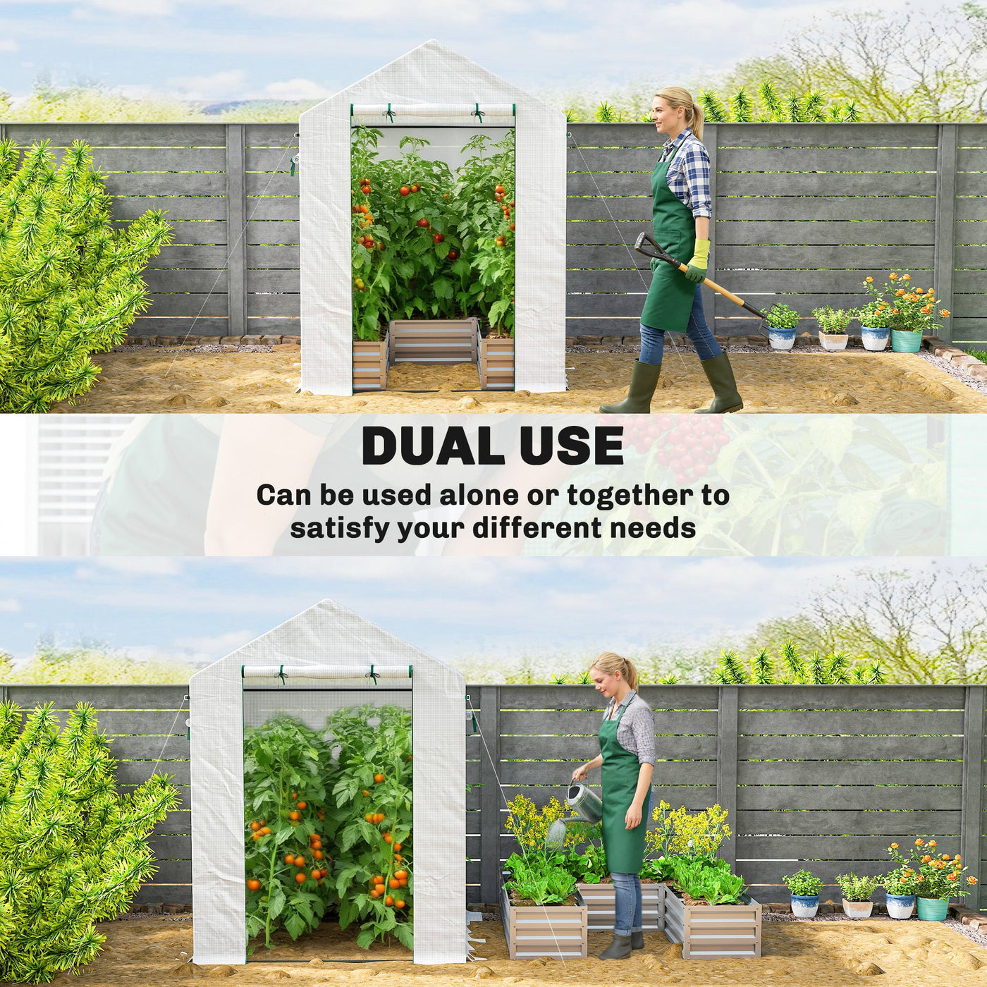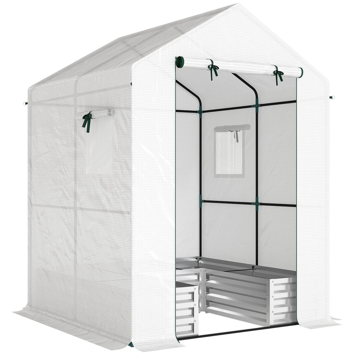 Outsunny Mini Greenhouse with Raised Garden Bed, Galvanised Walk-in Greenhouse with Roll Up Windows, 56" x 56" x 75", White - White
