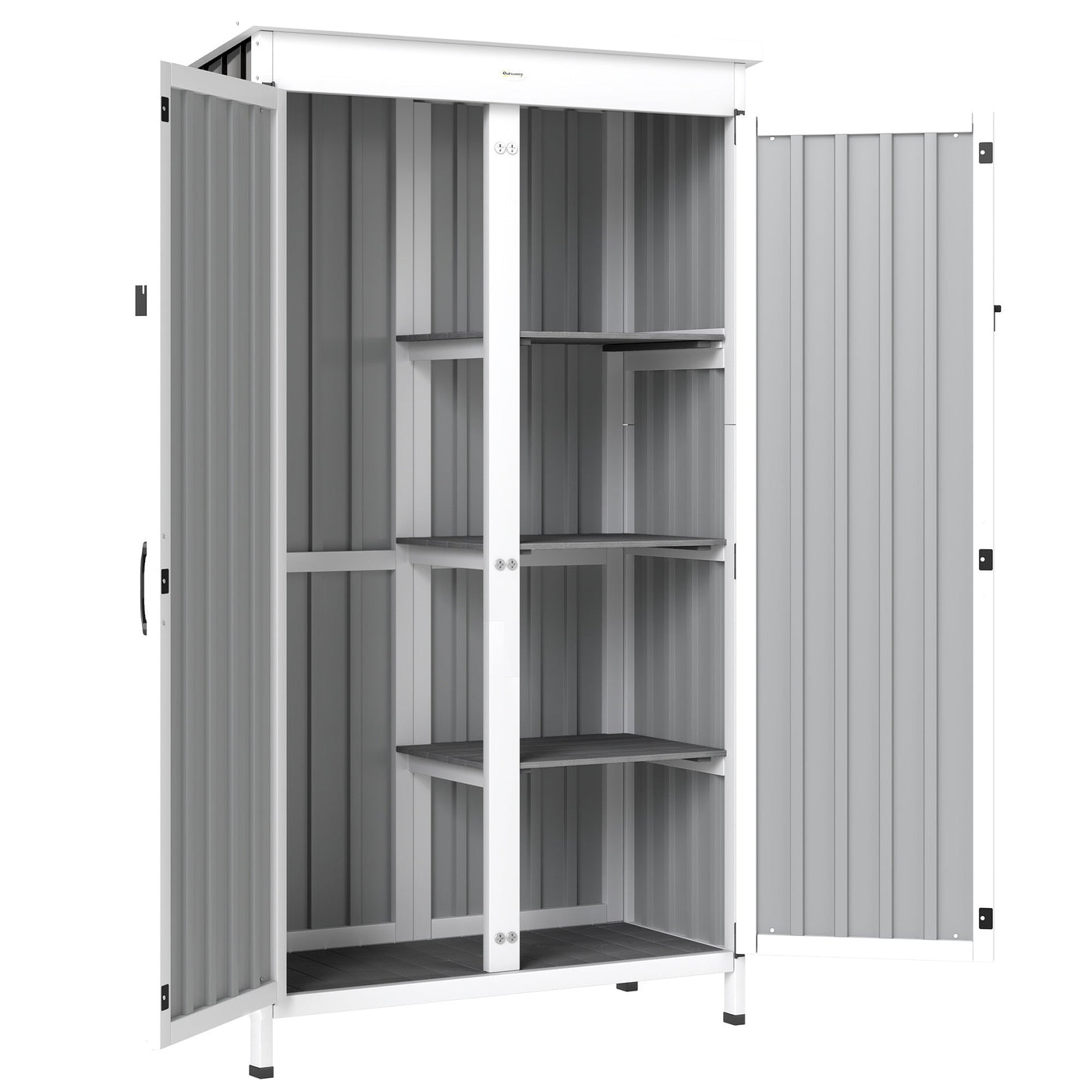 Outsunny Outdoor Storage Cabinet with Removable Shelves, Garden Tool Shed with Asphalt Roof, White and Black
