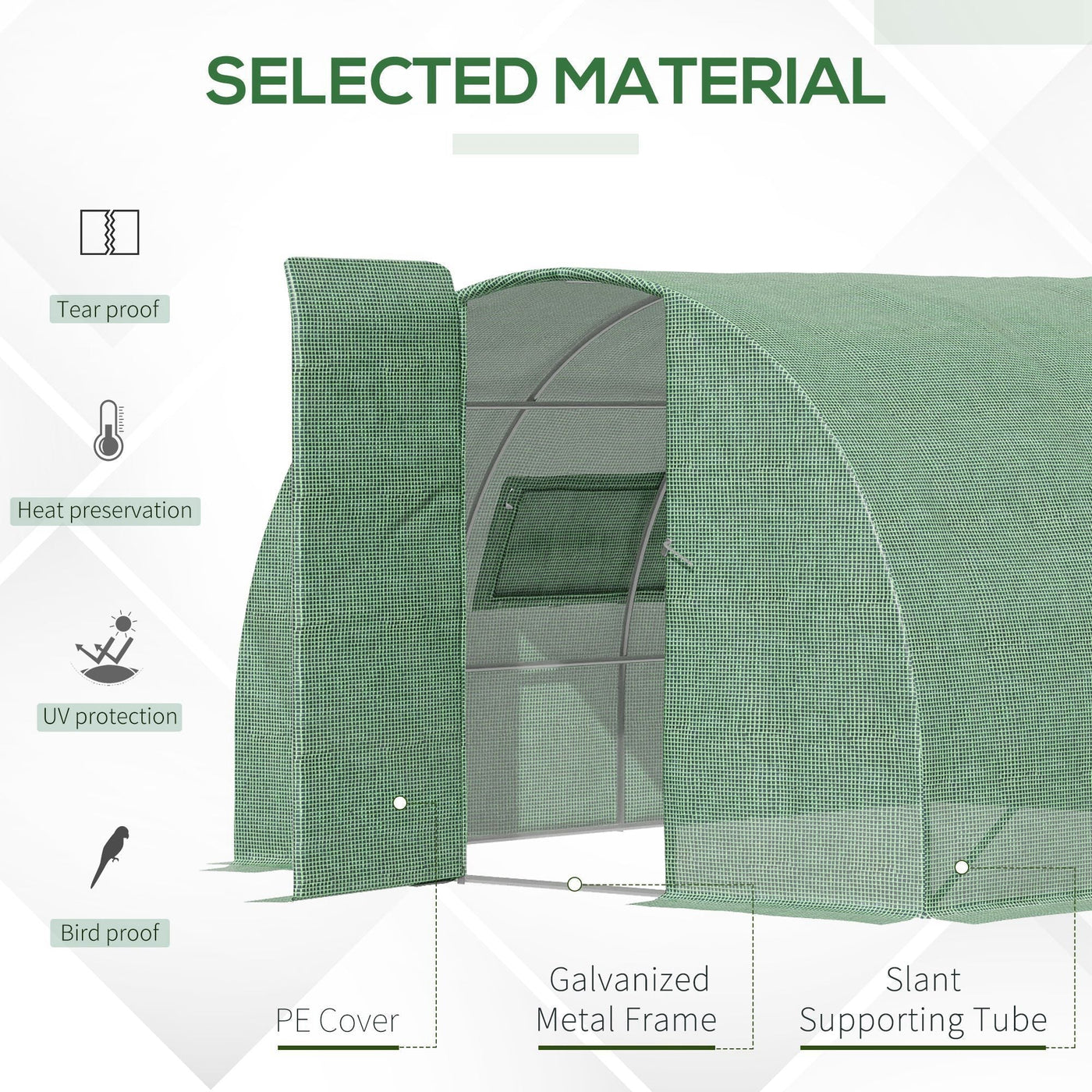 Outsunny Reinforced Walk in Polytunnel Greenhouse, 4x3x2 m - Green