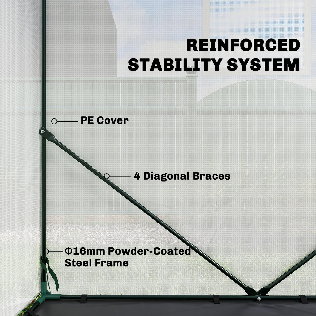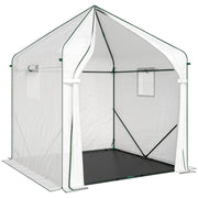 Outsunny Walk-in Greenhouse for Outdoors with Steel Frame, Large Plant House with Roll-up Door and PE Ground Cover, White - White