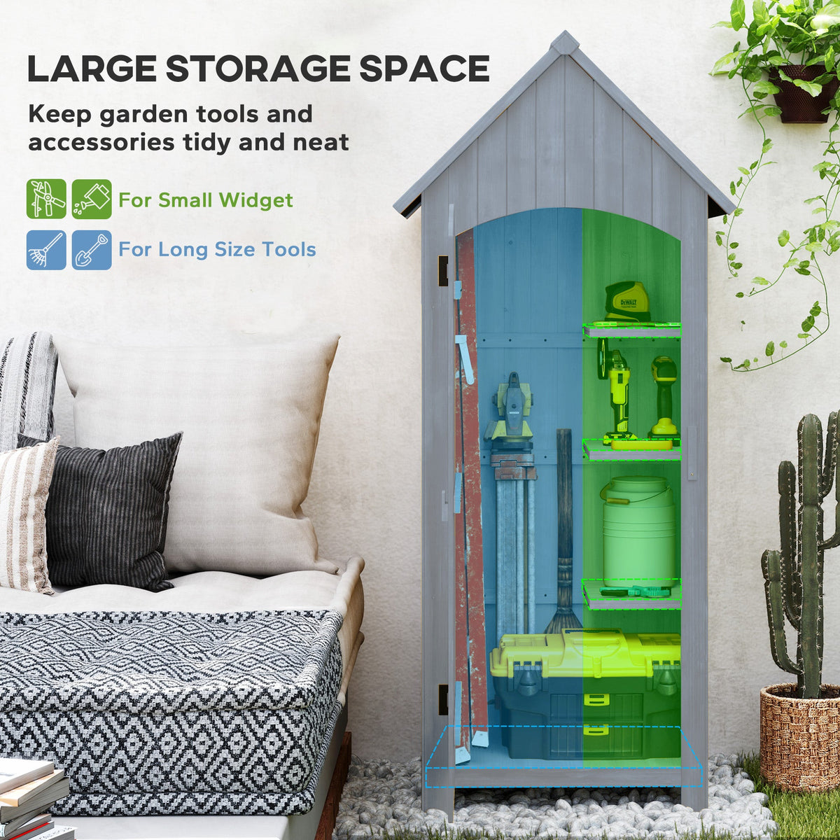 Outsunny Wooden Garden Storage Shed with 3 Shelves, Outdoor Tool Storage Cabinet with Tilt Roof and Lockable Door, 77.5 x 54.2 x 179.5 cm, Grey - Grey