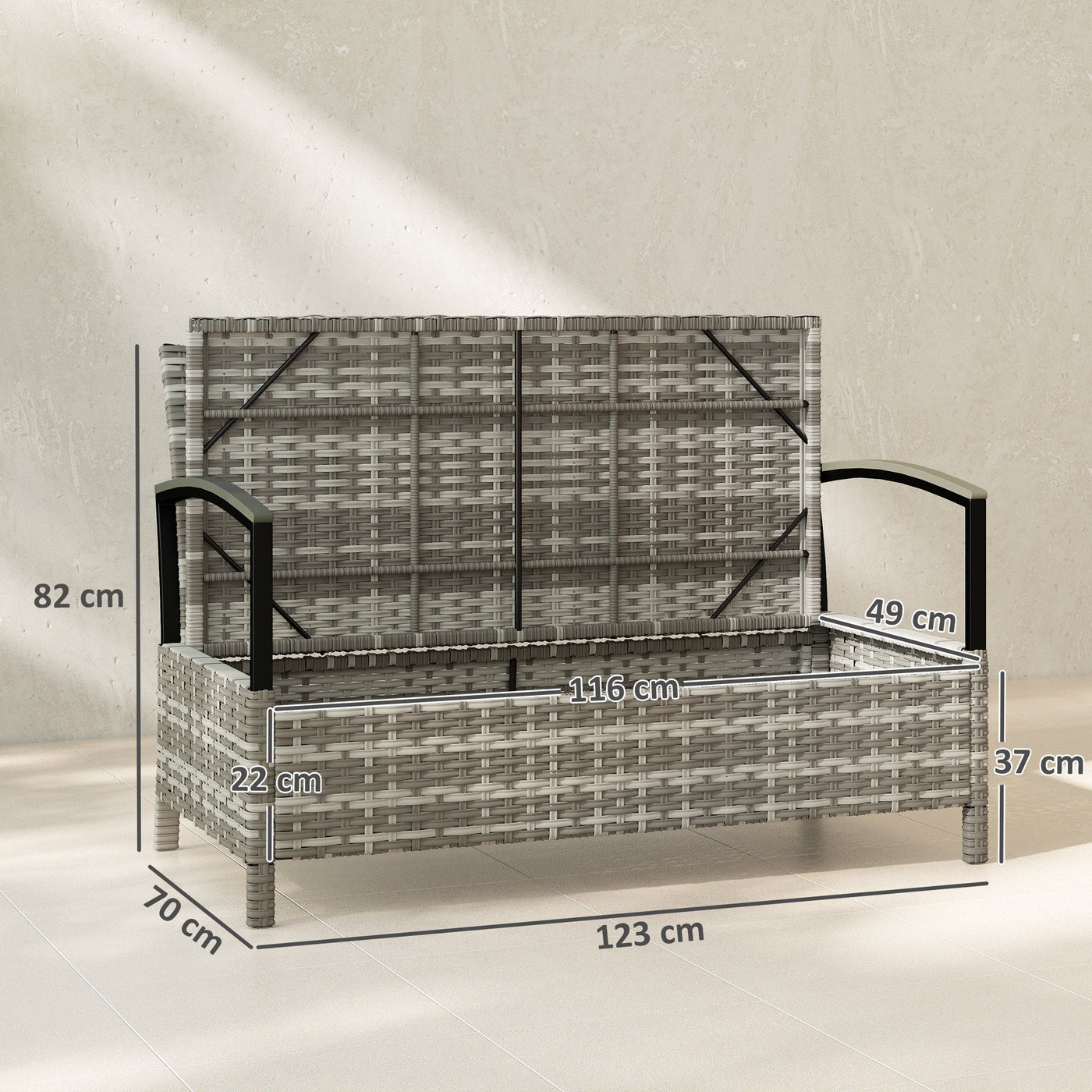Outsunny 125L Garden Storage Bench, 2 Seater PE Rattan Outdoor Bench Storage Box with Padded Cushion, Dark Grey - Dark Grey