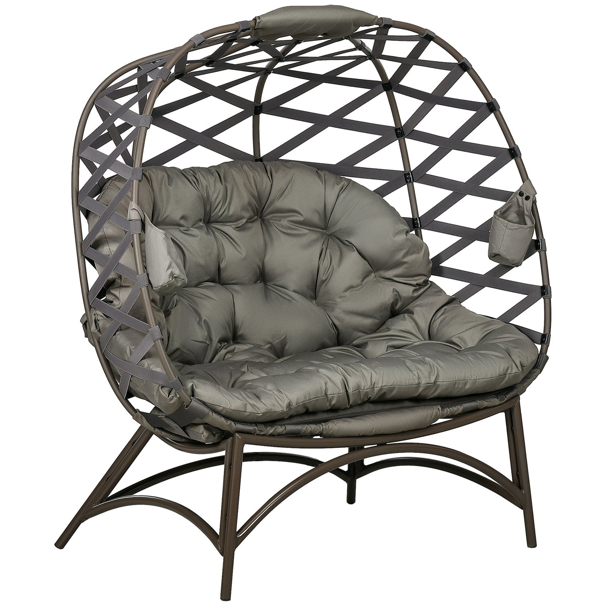 Outsunny 2 Seater Egg Chair Outdoor, Folding Weave Garden Furniture Chair with Cushion, Cup Pockets - Sand Brown - Sand brown