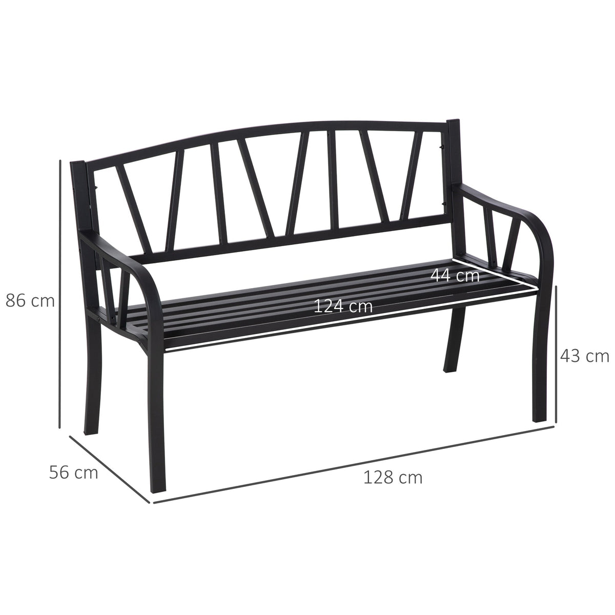 Outsunny 2-Seater Garden Bench Metal Loveseat w/ Decorative Backrest Ergonomic Armrest - Black