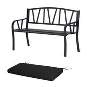 Outsunny 2-Seater Garden Bench with Cushion, Metal Loveseat, Slatted Outdoor Park Chair with Decorative Backrest and Armrest, Black - Black