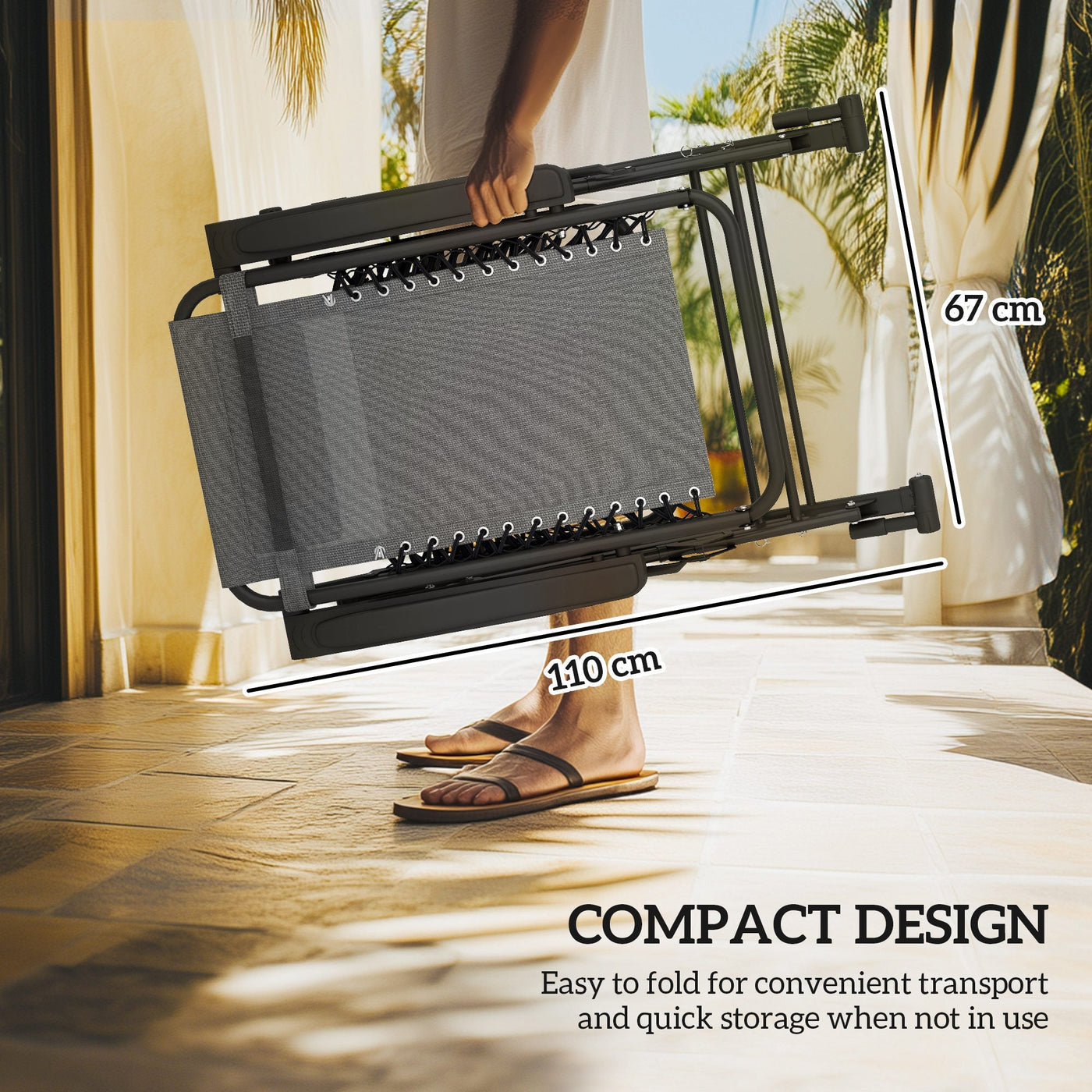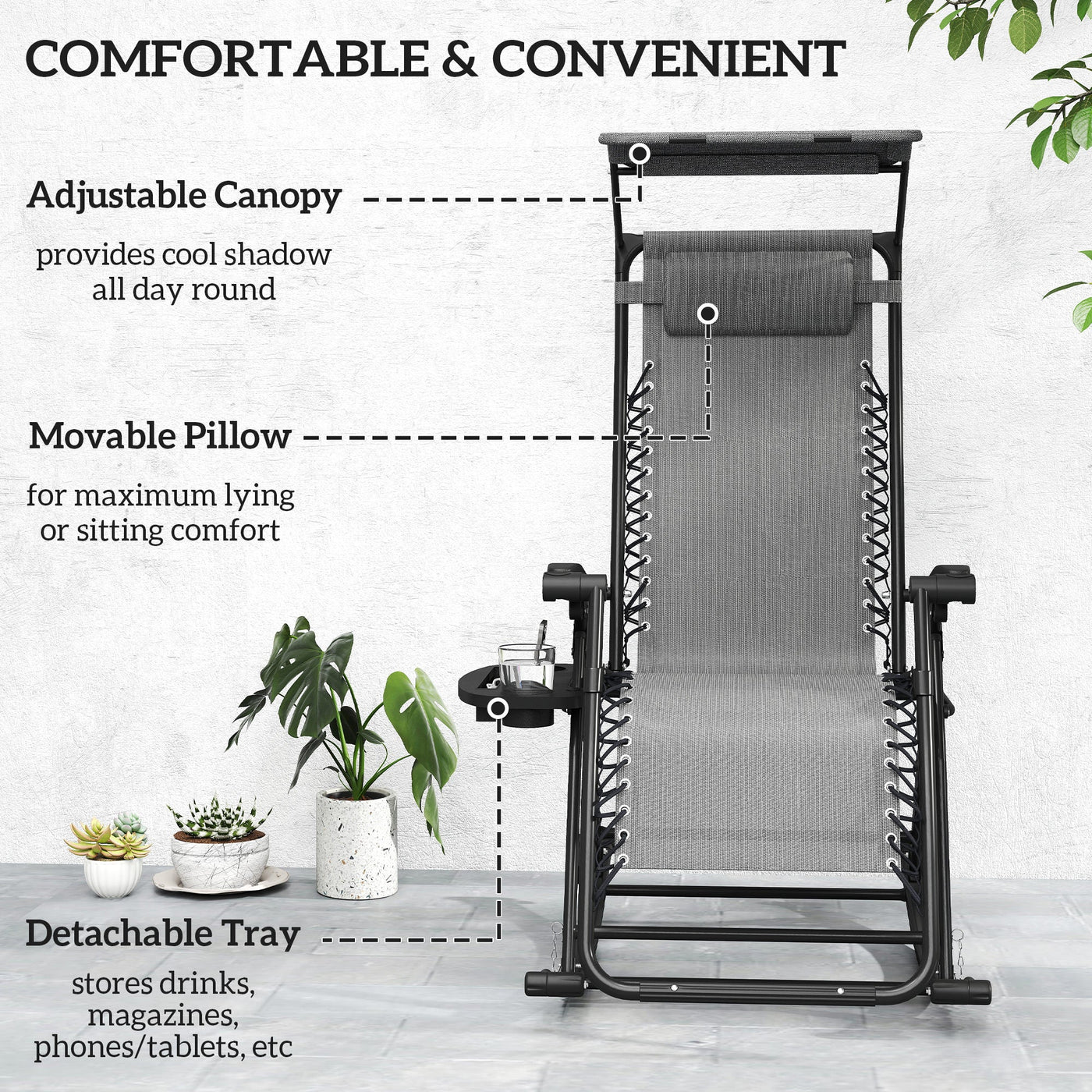Outsunny Garden Rocking Chair Folding Recliner Outdoor Adjustable Sun Lounger Rocker Zero-Gravity Seat with Headrest Side Holder Patio Deck - Grey - Grey