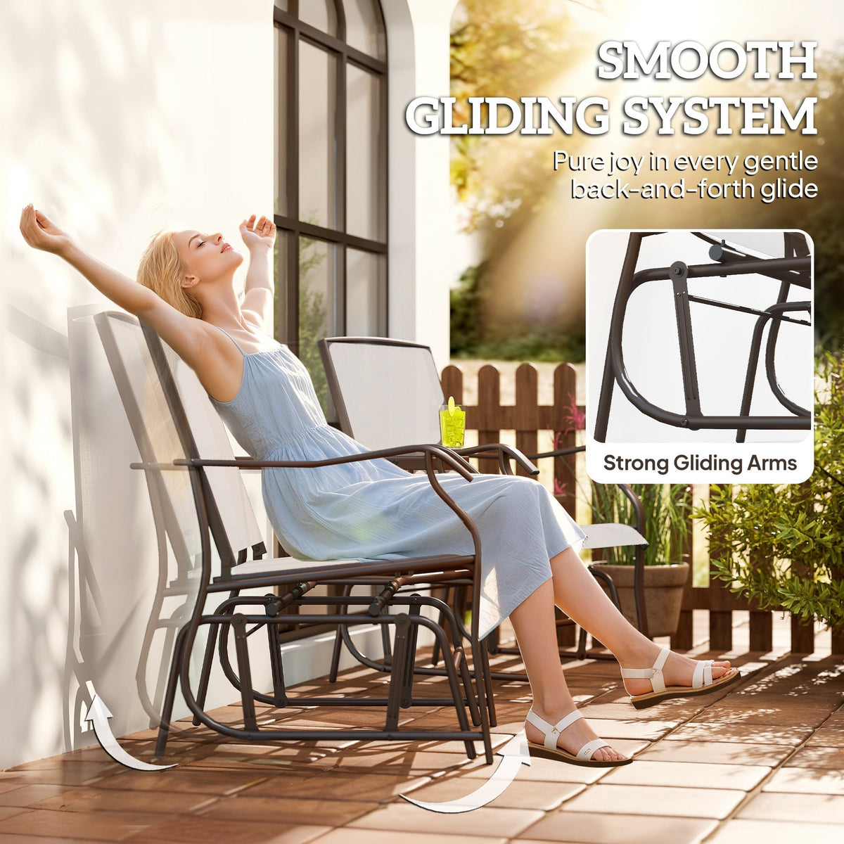 Outsunny Gliding Jack and Jill Seat, with Glass-Top Table - Brown/Beige - Beige