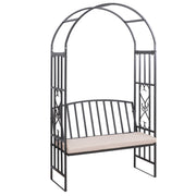 Outsunny Metal Frame Bench W/Arch, 114Lx60Wx206H cm-Grey - Black