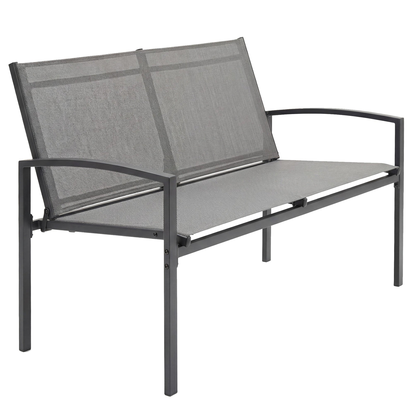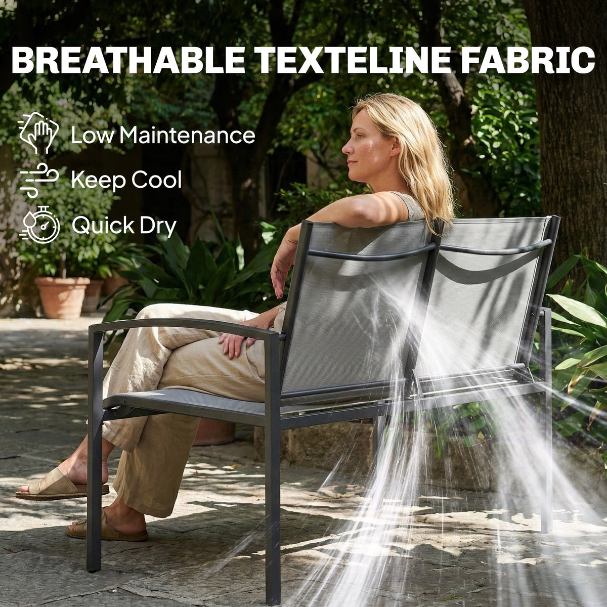 Outsunny Metal Garden Bench, 2 Seater Outdoor Furniture Seating with Breathable Texteline Fabric, Park Patio Seat, Grey - Grey