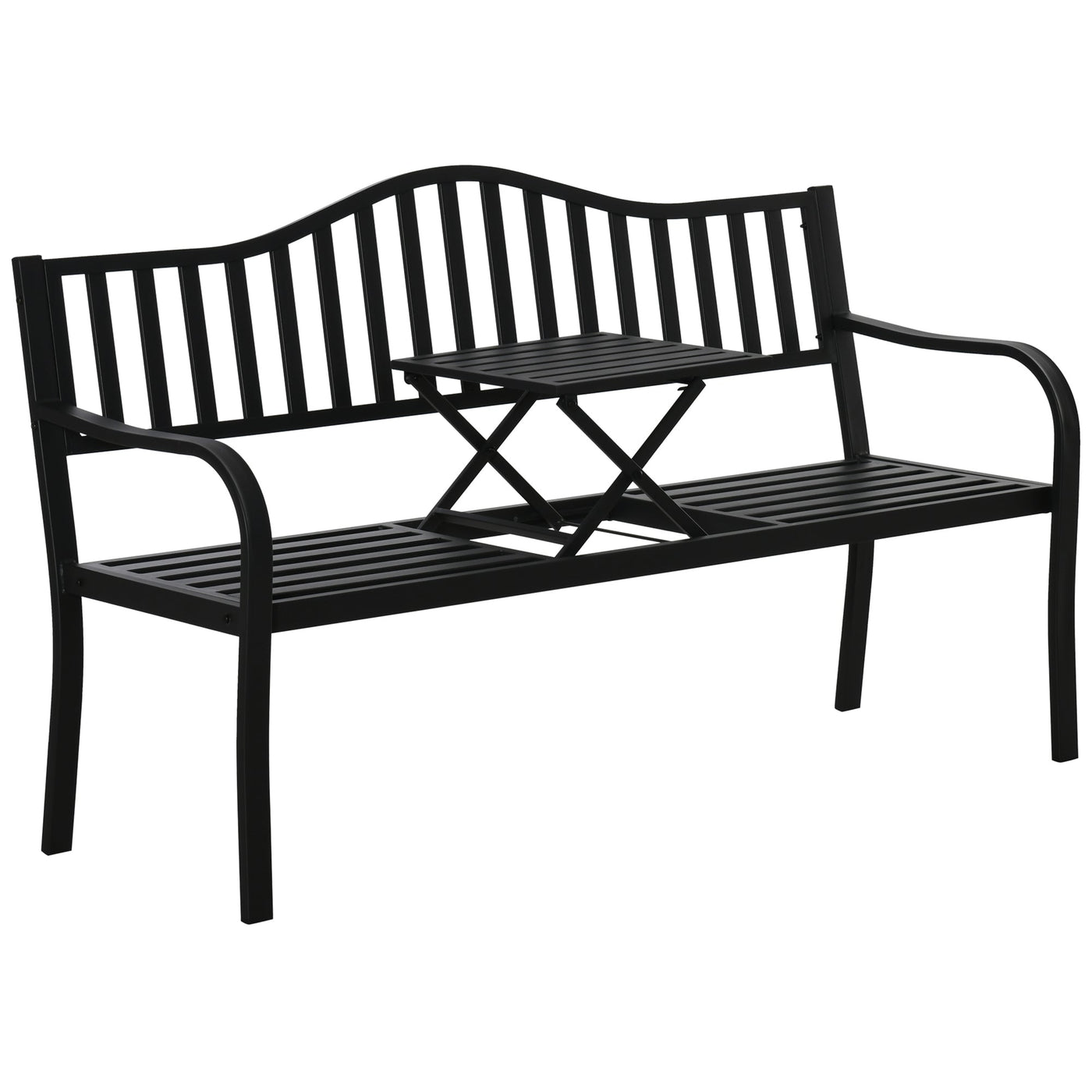 Outsunny Metal Outdoor Bench with Liftable Middle Table, Patio Loveseat, Garden Bench for Garden, Porch, Seats 2â3 People, Black - Black