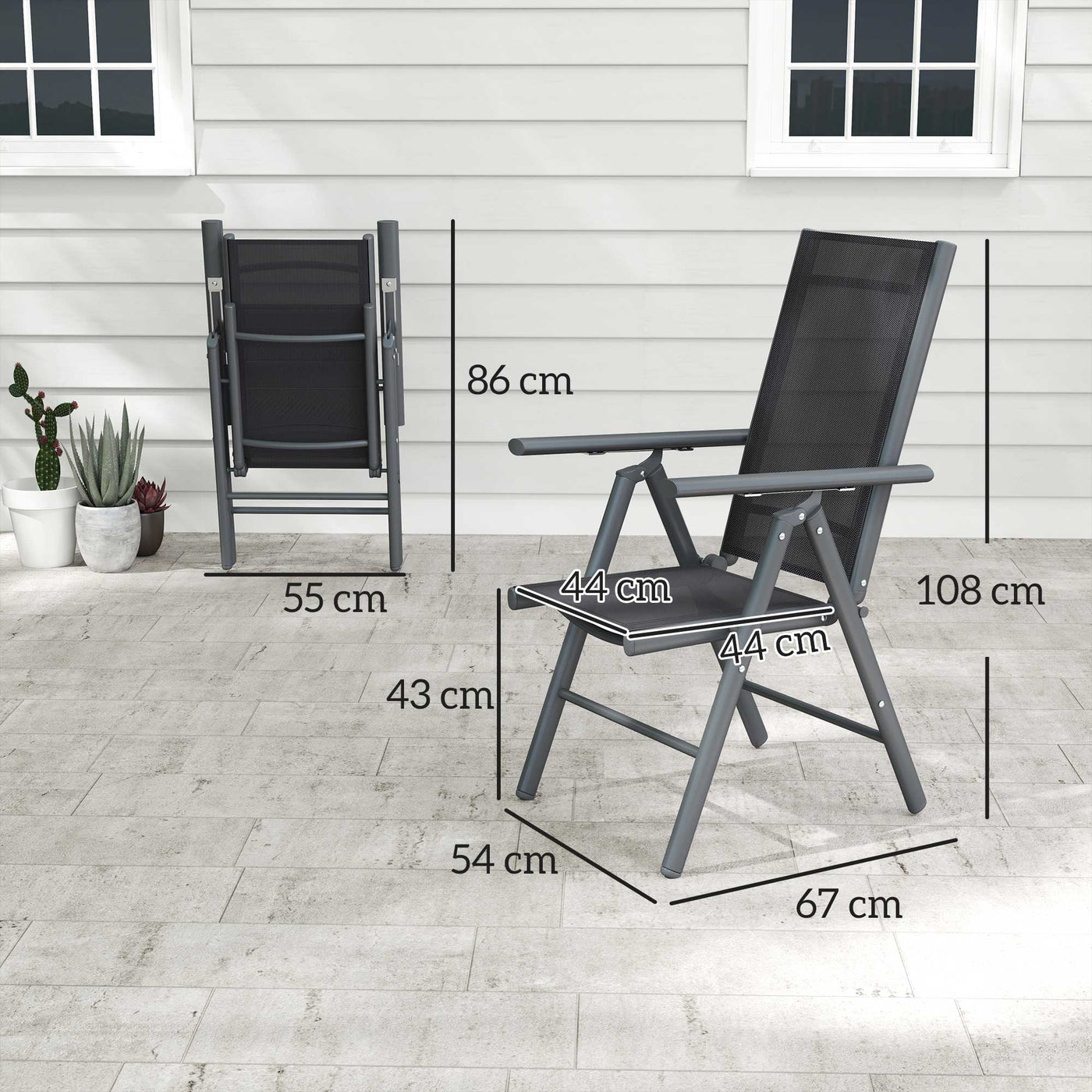 Outsunny Set of 2 Folding Chair, Aluminium Frame Outdoor Camping Chairs with Breathable Mesh Back and Seat, Garden Chair Set with Armrests for Balcony, Dark Grey - Dark Grey