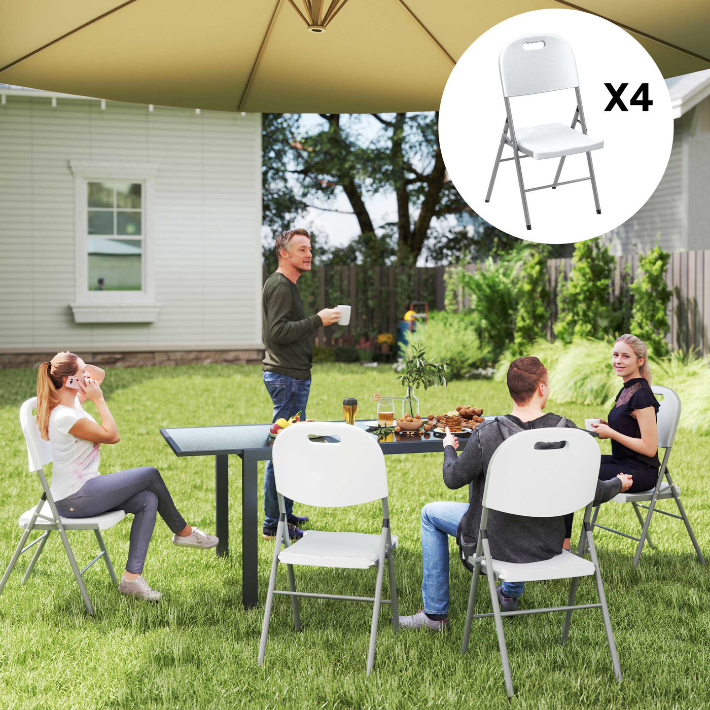Outsunny Set of Four Foldable Outdoor Chairs - White - White