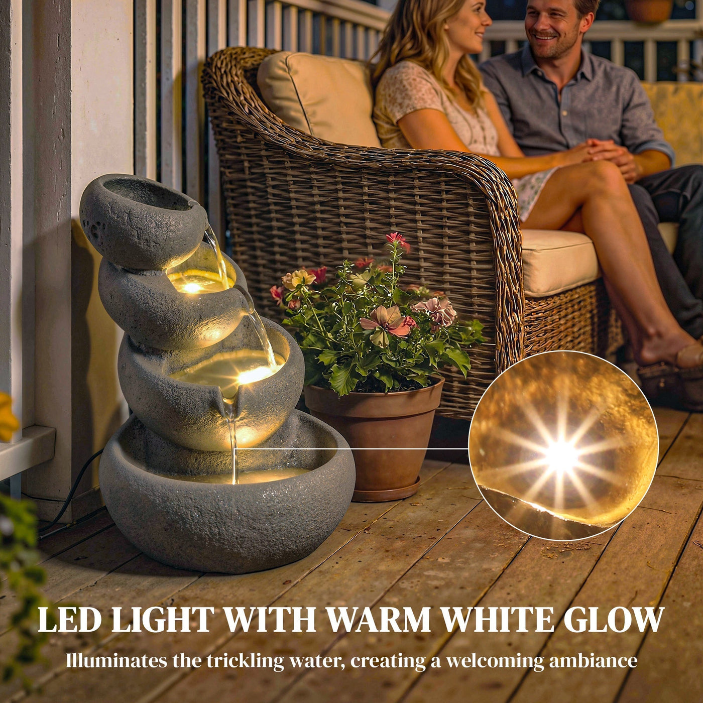 Outsunny 4-Tier Water Fountain Outdoor, Garden Water Feature with LED Lights and Pump, Freestanding Resin Waterfall for Patio - Mixed Colour