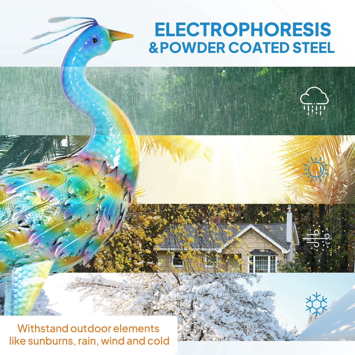Outsunny Peacock Garden Statue, Standing Garden Ornament, Metal Garden Gift with Stakes for Patio Pond Landscape Decoration, Multi-Colour - Multi Colour