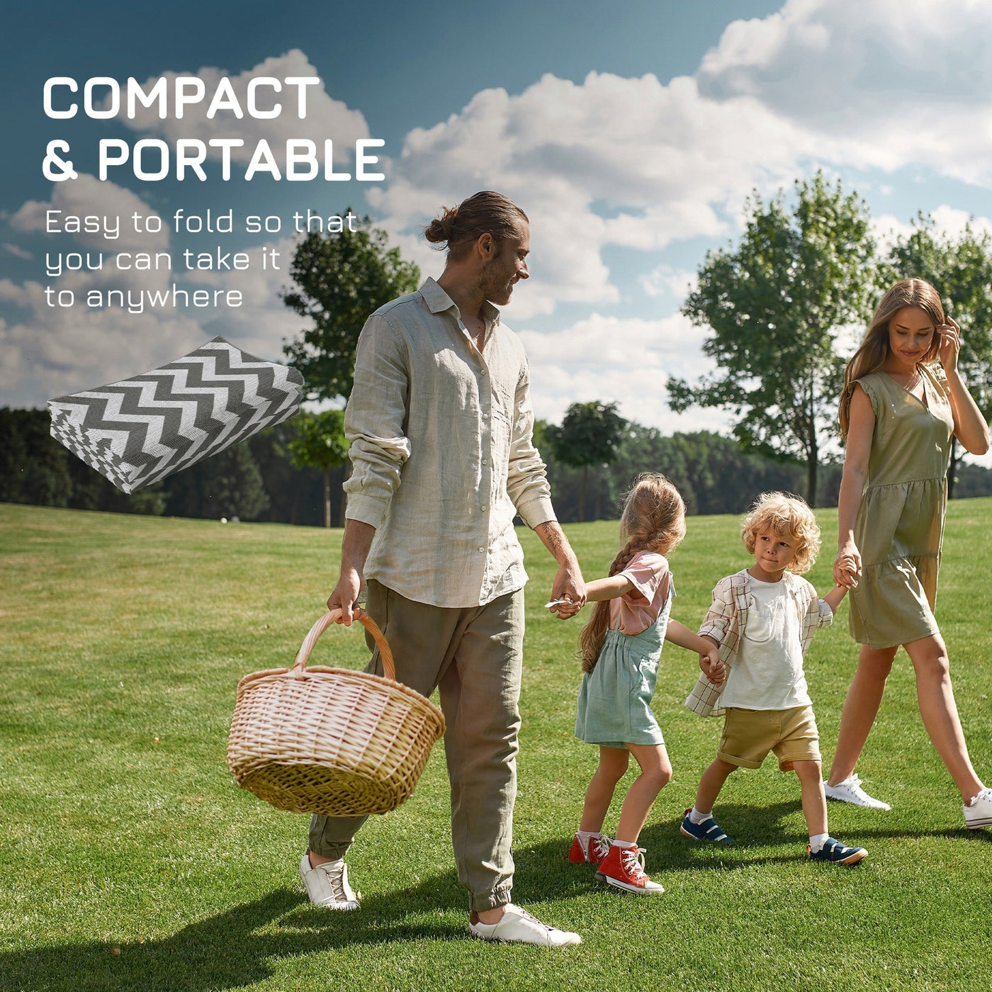 Outsunny 121 x 182 cm(4x6ft) Outdoor Rug Reversible Mat Plastic Straw Rug Portable RV Camping Mat for Garden Deck Picnic Indoor, Light Grey & White - Grey, White