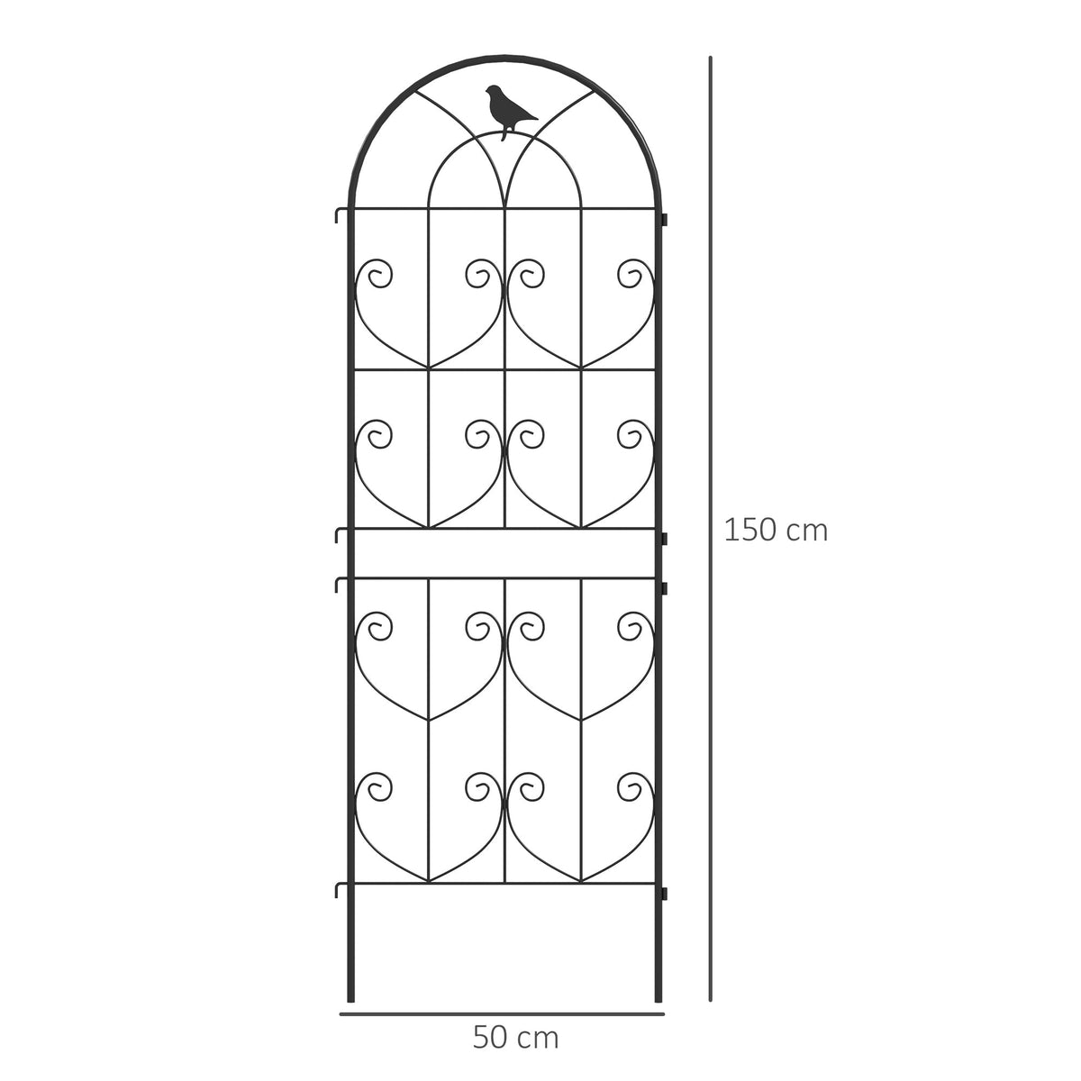 Outsunny Set of 2 Garden Trellis, Metal Fence Panels for Climbing Outdoor Plants, Flowers, 150 x 50cm - Black