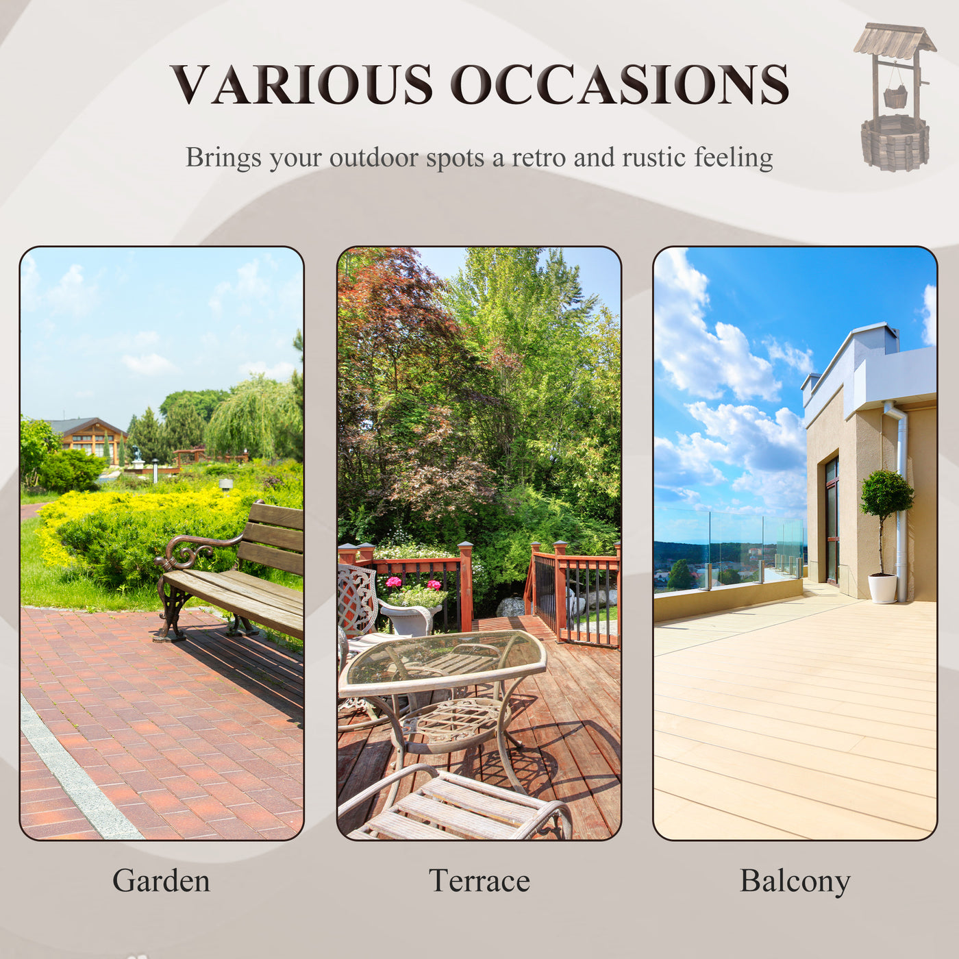 Outsunny Wooden Wishing Well Planter Outdoor Flower Pot Backyard Garden Decor w/ Bucket - Carbonised finish
