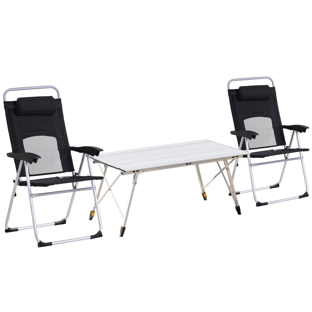 Outsunny 3 Piece Folding Camping Table and Chairs Set, Backpacking Chairs with Portable Table - Black, Silver