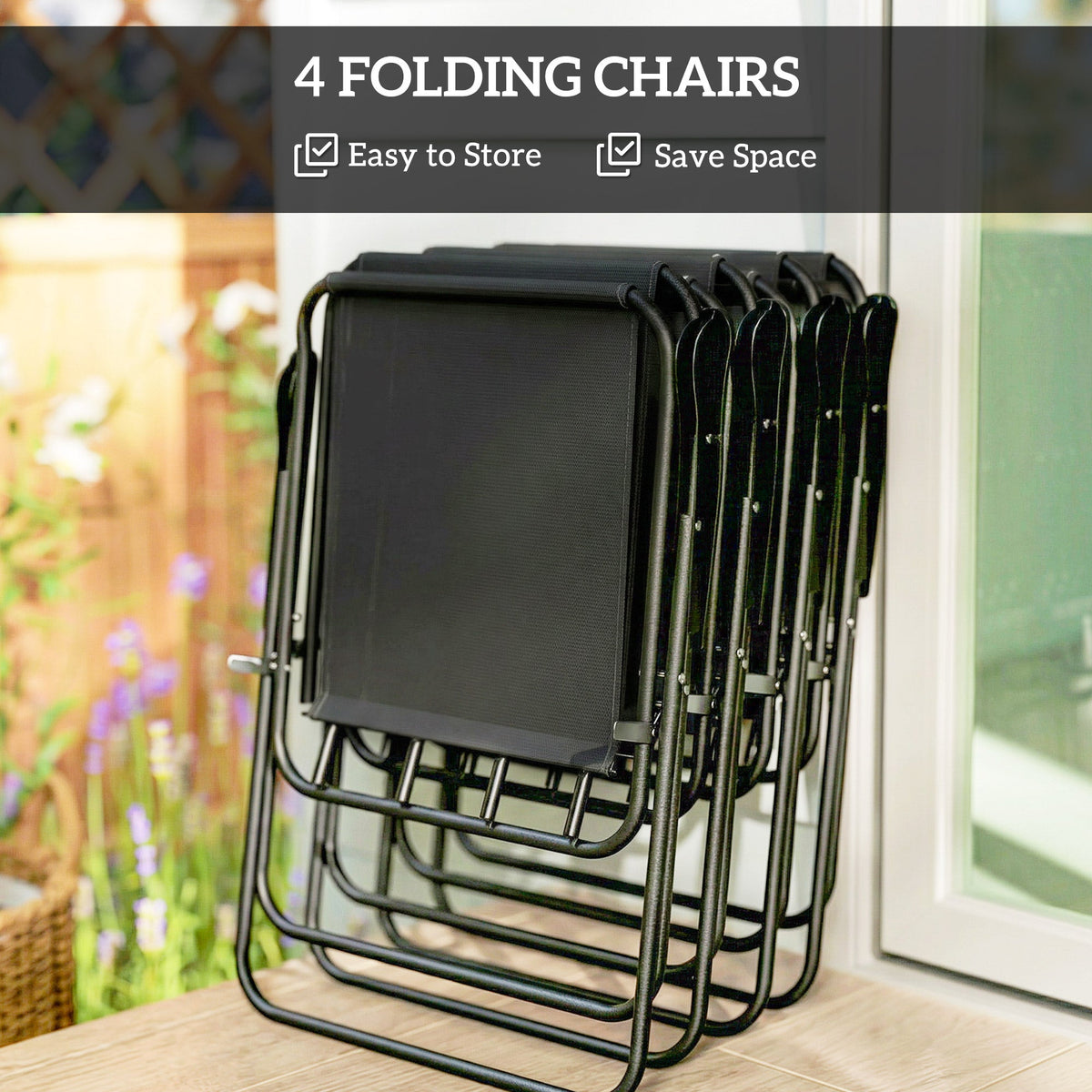 Outsunny 4 Seater Garden Furniture Set, 6 Pieces Garden Table and Chairs with Parasol for Patio, Black - Black