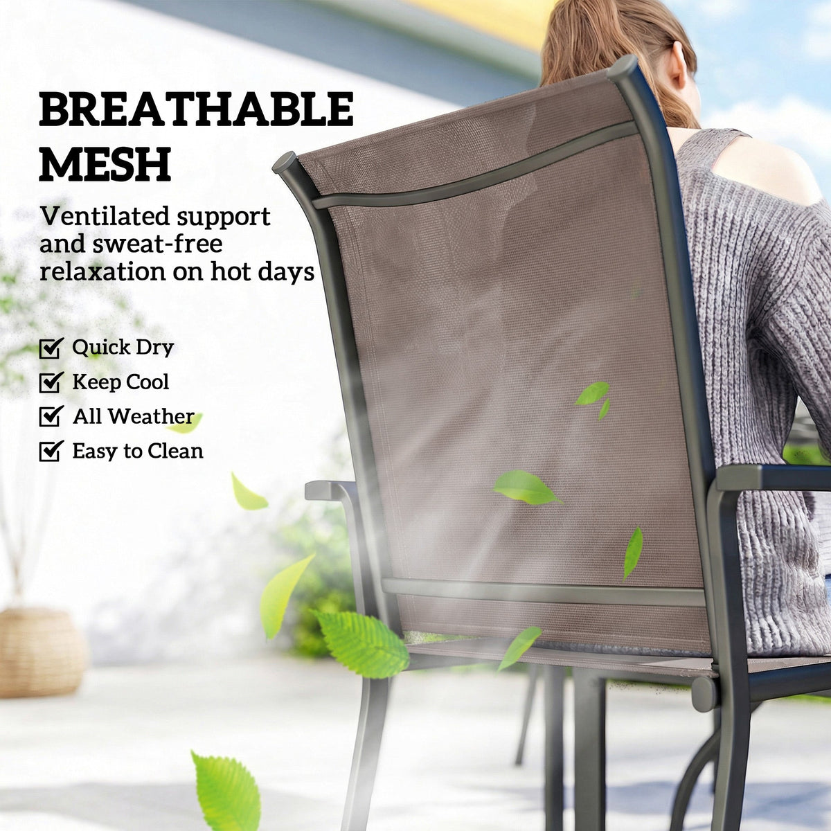 Outsunny 5 Pieces Outdoor Dining Set for 4, Garden Table and Stackable Chairs with Breathable Mesh Seat, Grey and Khaki - Khaki