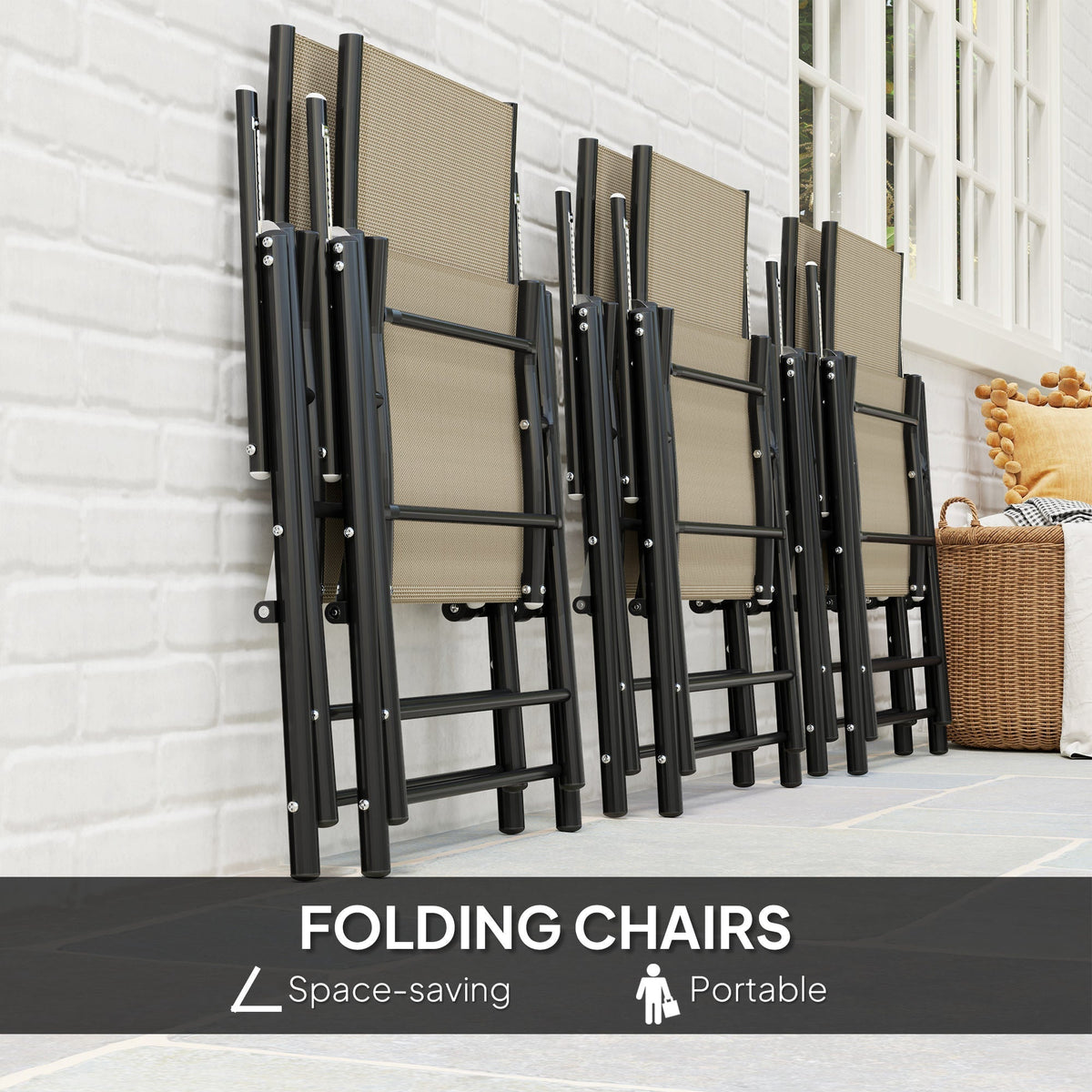 Outsunny Seven-Piece Steel Outdoor Dining Set, with Parasol Hole - Khaki - Khaki