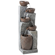 Outsunny Outdoor Fountain with 5-Tier, Garden Fountain with LED Lights, Adjustable Flow, Grey and Rustic Brown - Grey, Rustic Brown