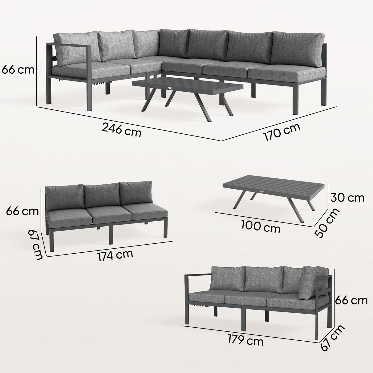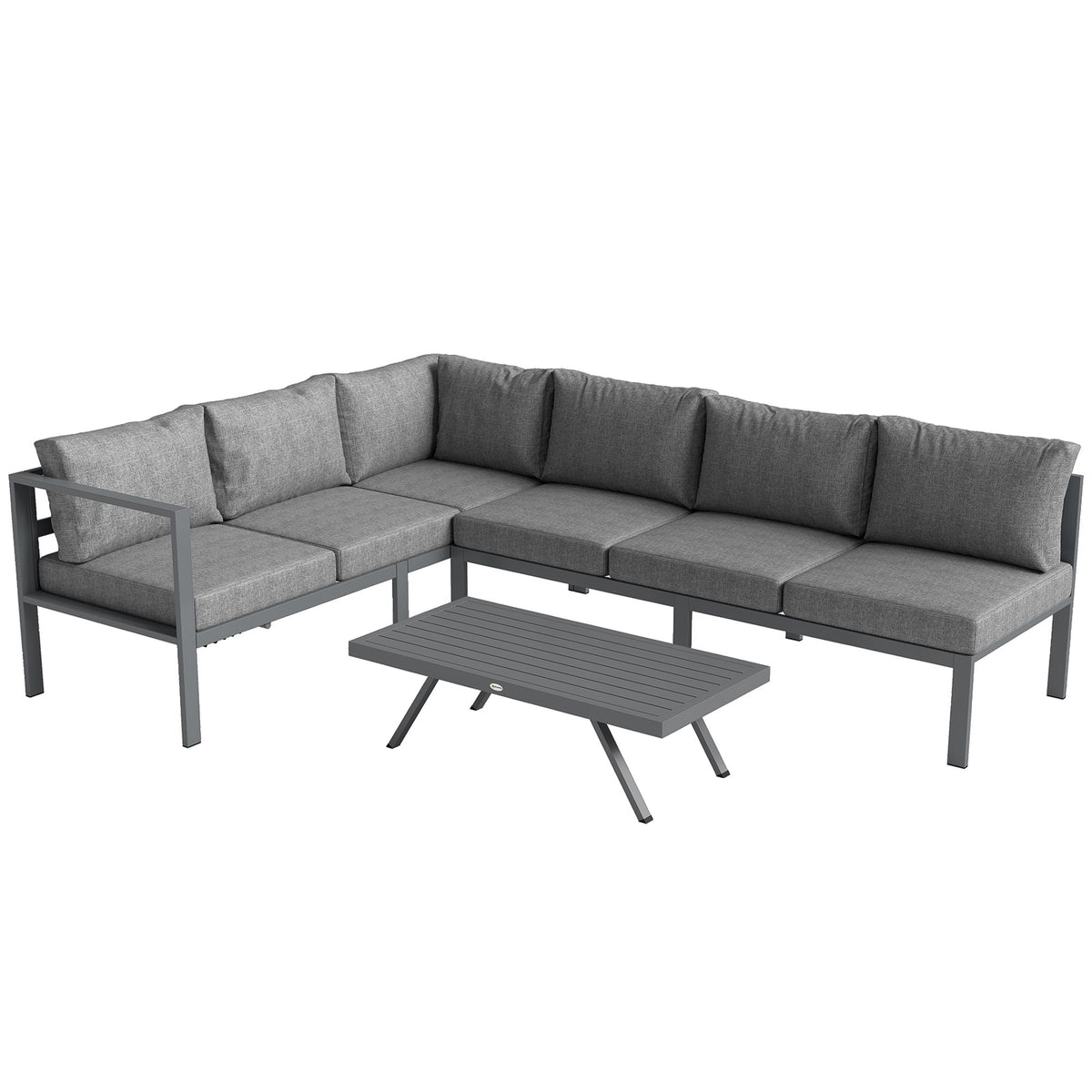 Outsunny 3 Pieces Garden Furniture Set, Aluminium Corner Lounge Set with Adjustable Backrest and Coffee Table - Dark Grey