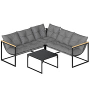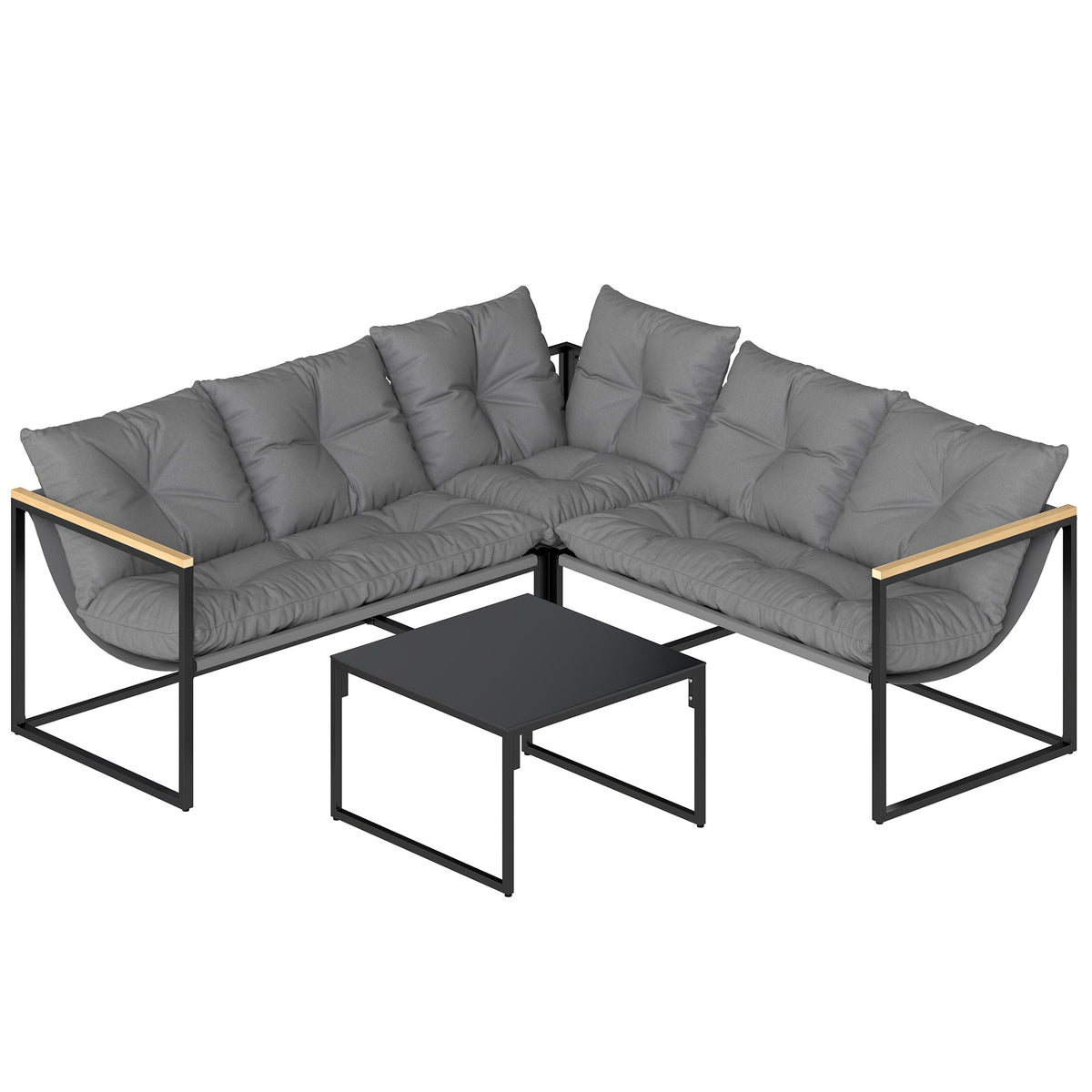 Outsunny 4 Piece Garden Furniture Set with Thick Cushions and Coffee Table, Patio Conversation Set for Porch, Balcony, Deck, Grey - Grey