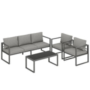 Outsunny 4 Piece Outdoor Garden Furniture Set, Patio Furniture with 3-Seater Sofa, Armchairs and Coffee Table - Dark Grey