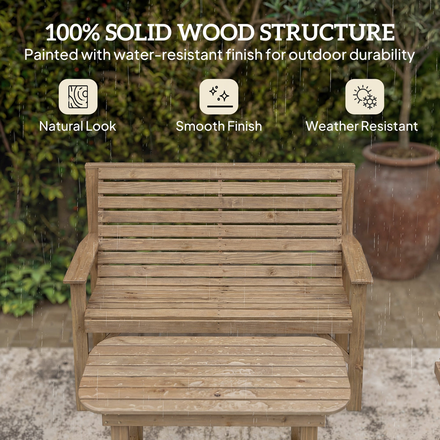 Outsunny 4 Piece Wooden Garden Furniture Set, Outdoor Garden Sofa Set with 2 Armchairs, Loveseat and Coffee Table, Natural Wood - Natural wood finish