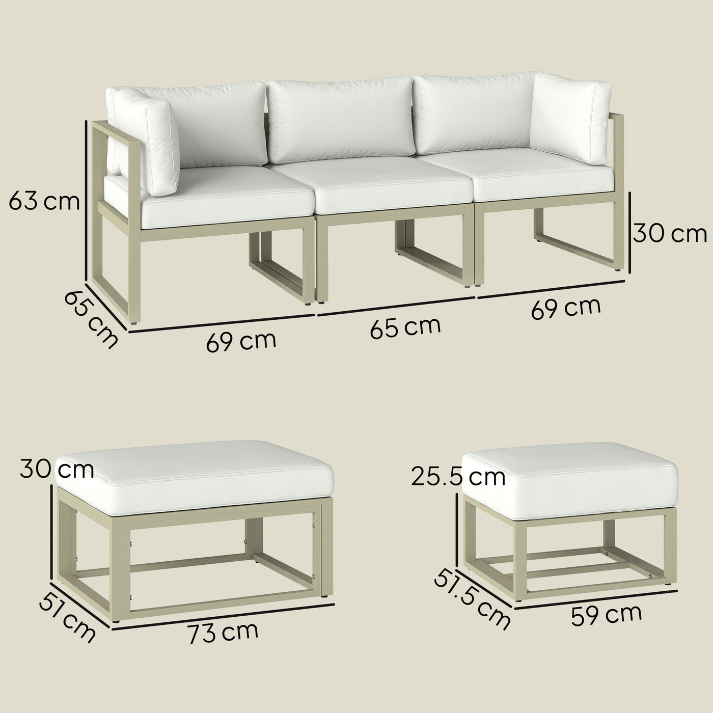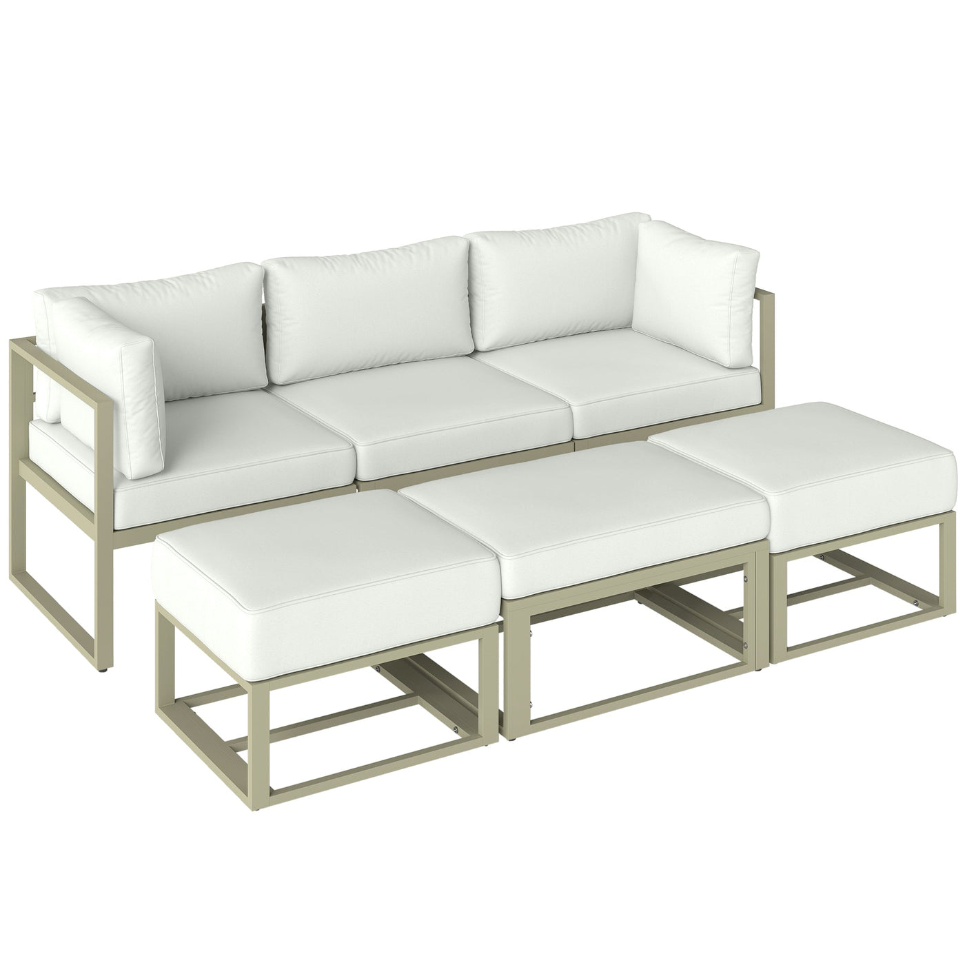 Outsunny Garden Daybed, 6 Piece Outdoor Sectional Sofa Set, Aluminium Patio Conversation Furniture Set with Coffee Table - Cream