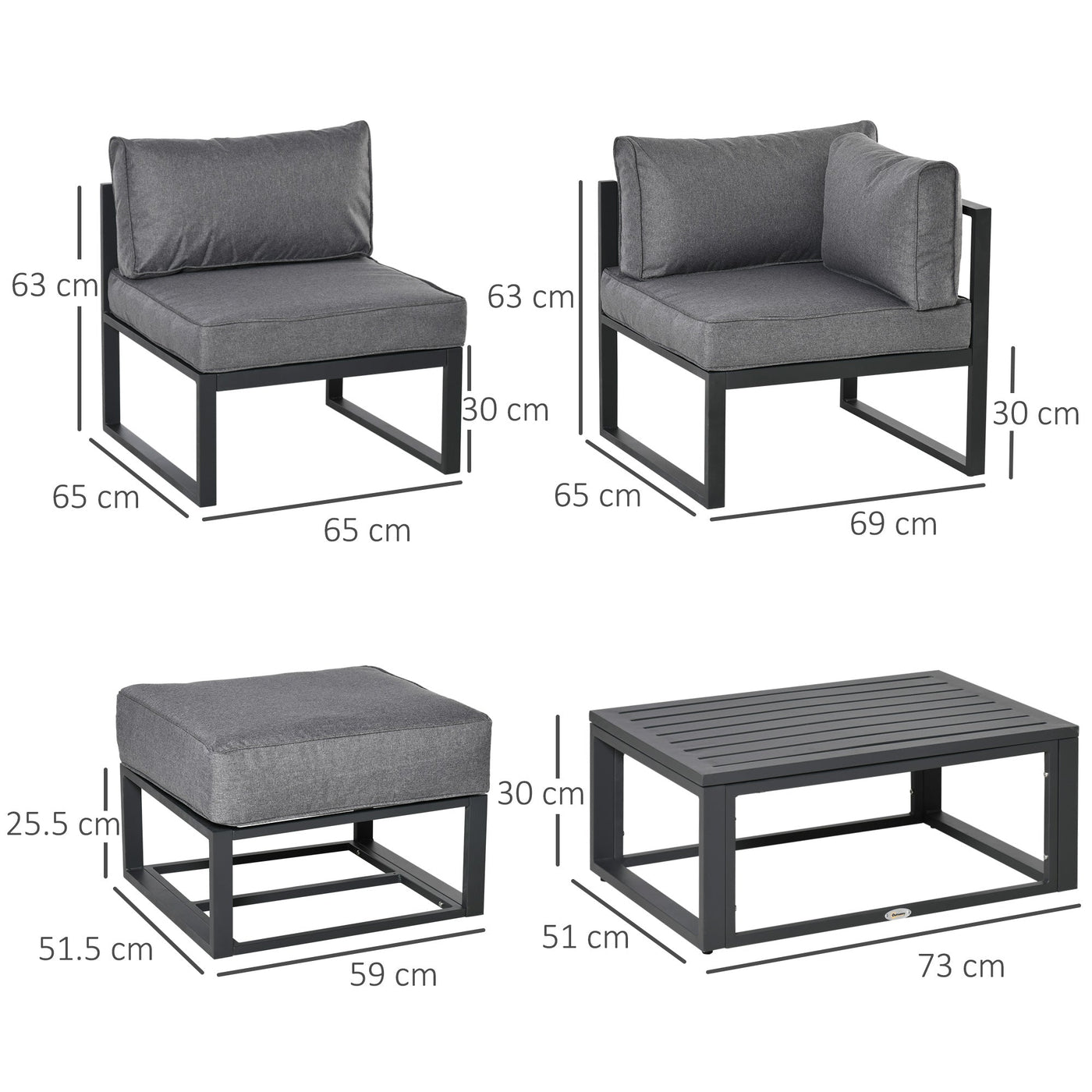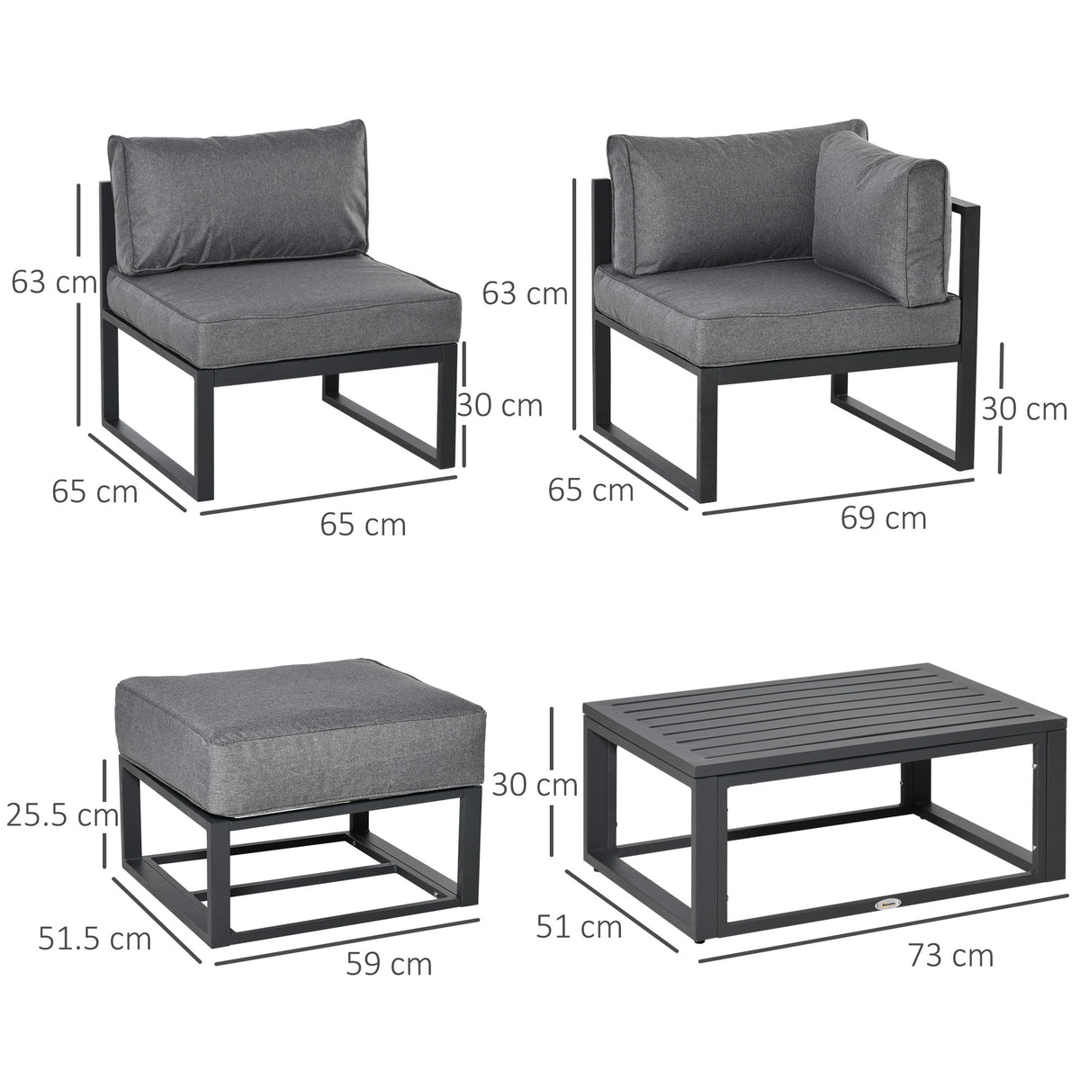 Outsunny Garden Daybed, 6 Piece Outdoor Sectional Sofa Set, Aluminum Patio Conversation Furniture Set with Coffee Table, Footstool and Cushions, Grey - Grey