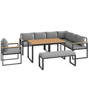 Outsunny Six Piece L Shaped Garden Furniture Set with 3 Loveseats - Natural Wood Finish - Natural wood finish