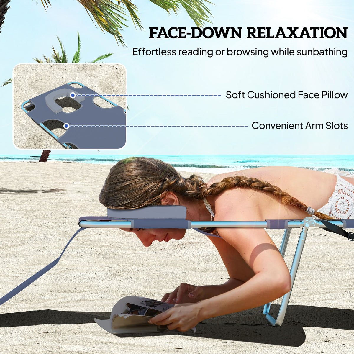 Outsunny 5-Position Adjustable Sun Loungers Set of 2 with Reading Hole and Side Pocket, Grey - Grey