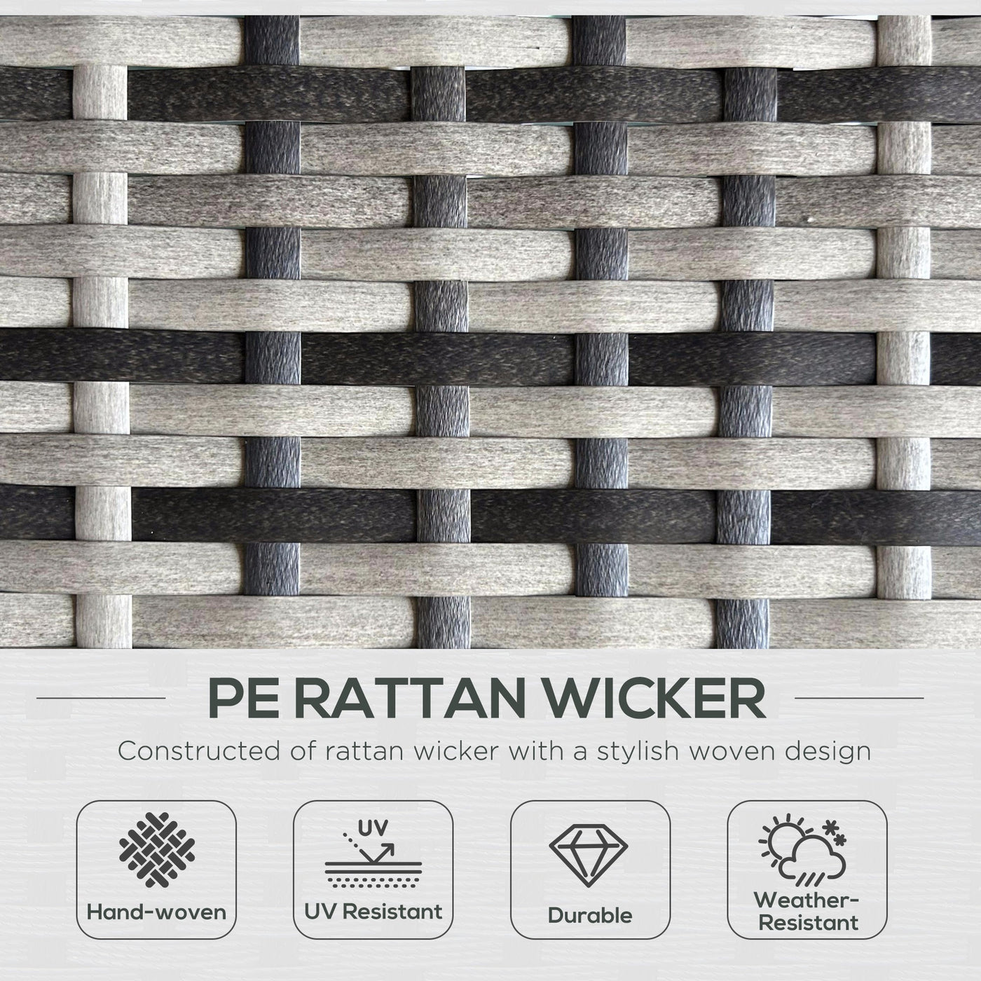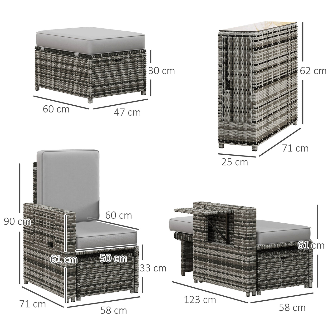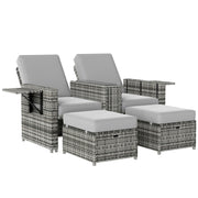 Outsunny Rattan Sun Lounger w/ Storage Tea Table & Footstools, Grey - Grey