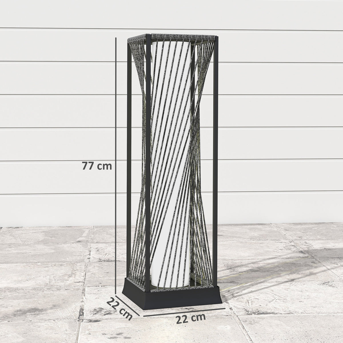 Outsunny Garden Rattan Lamp, 77 cm Tall Solar Rattan Floor Lamp, Solar Garden Light with Auto On/Off LED Lights, IP44 Waterproof for Outdoor, Porch, Pathway, Deck, Grey - Grey