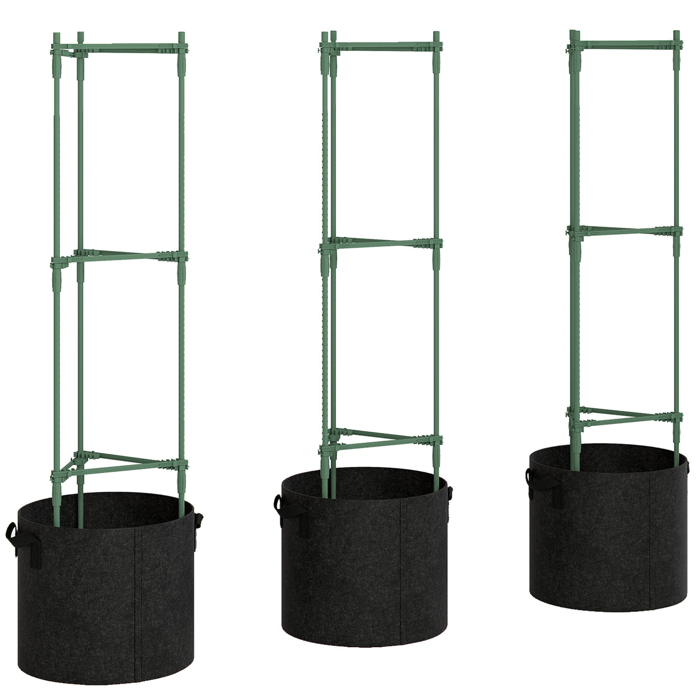 Outsunny 3 Packs Tomato Cages with 83.7L Grow Bags, 47.2" Adjutstable Triangle Plant Stakes Support Trellis with Planter Bags - Green
