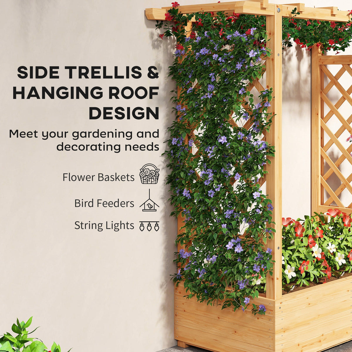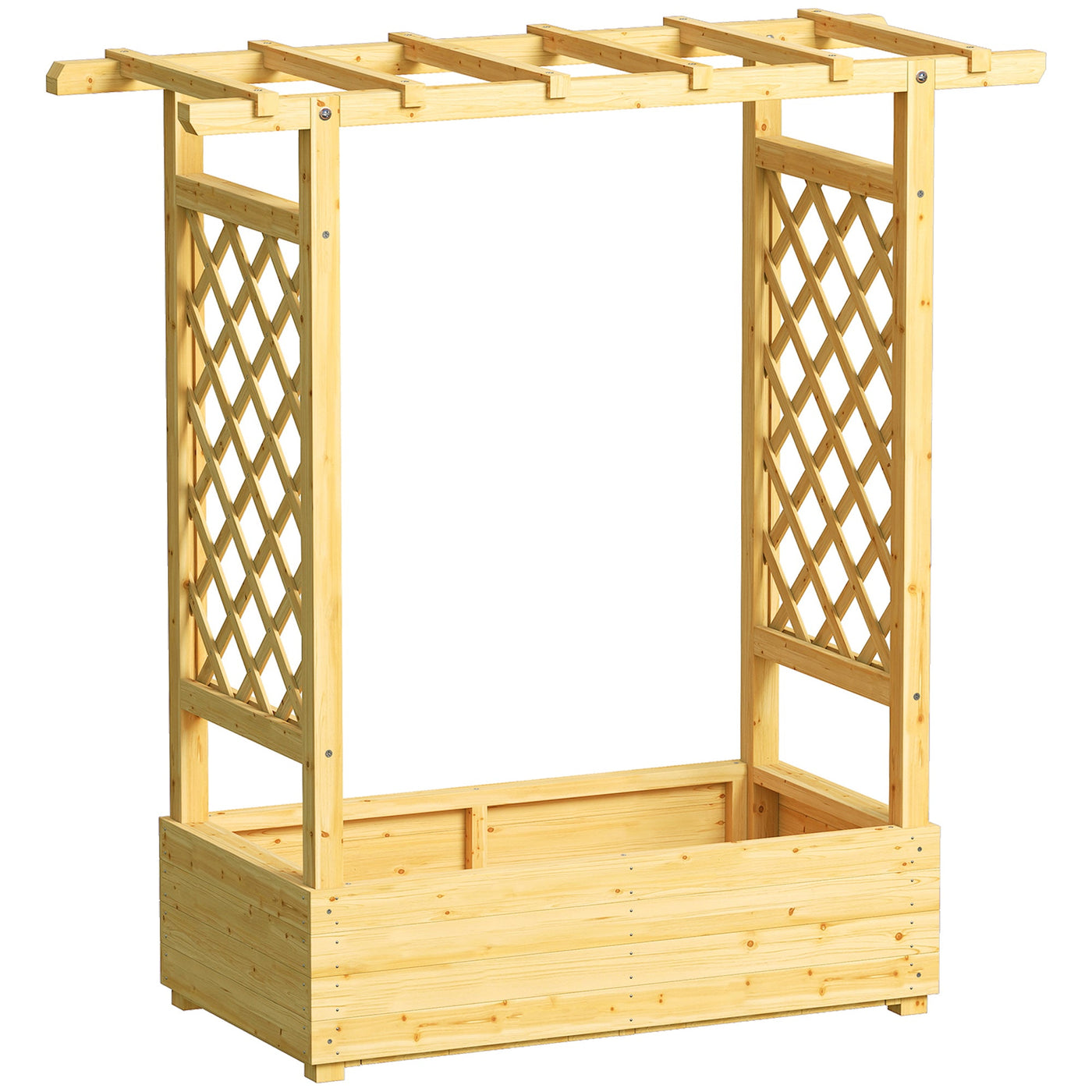 Outsunny Garden Planter with Trellis, Wooden Raised Bed for Garden with Hanging Roof and Drainage Holes, Outdoor Trellis Planter Box for Vegetables, Herbs and Flowers, 110 x 44 x 113 cm, Natural - Natural wood finish