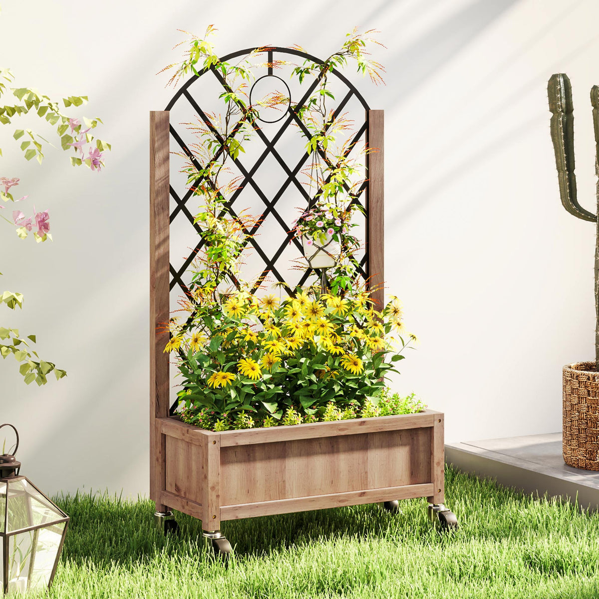 Outsunny Wooden Planter, with Metal Trellis - Brown/Black