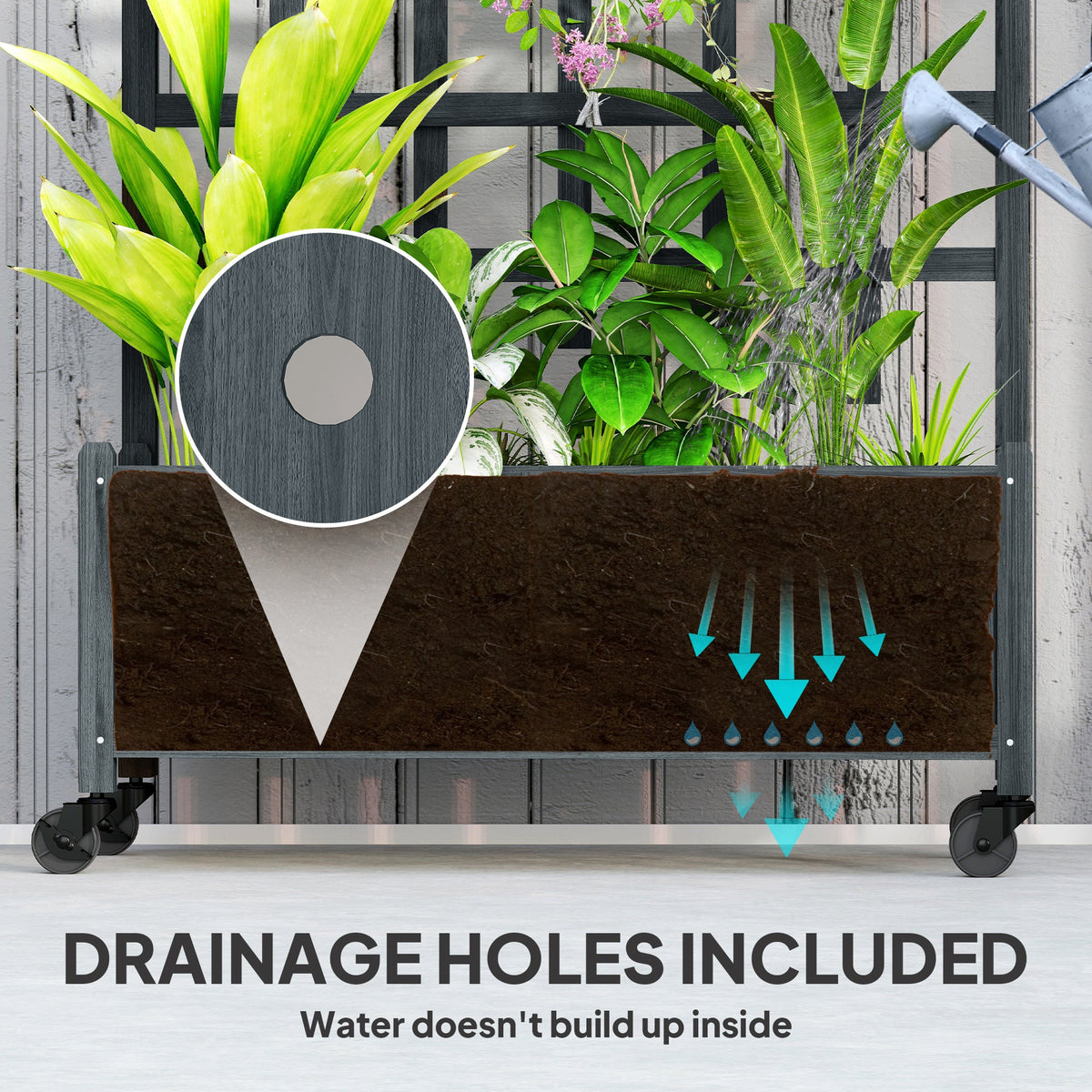 Outsunny Wooden Trellis Planter, Raised Garden Bed with Wheels, to Climb and Grow Vegetables, Herbs and Flowers, Grey - Grey
