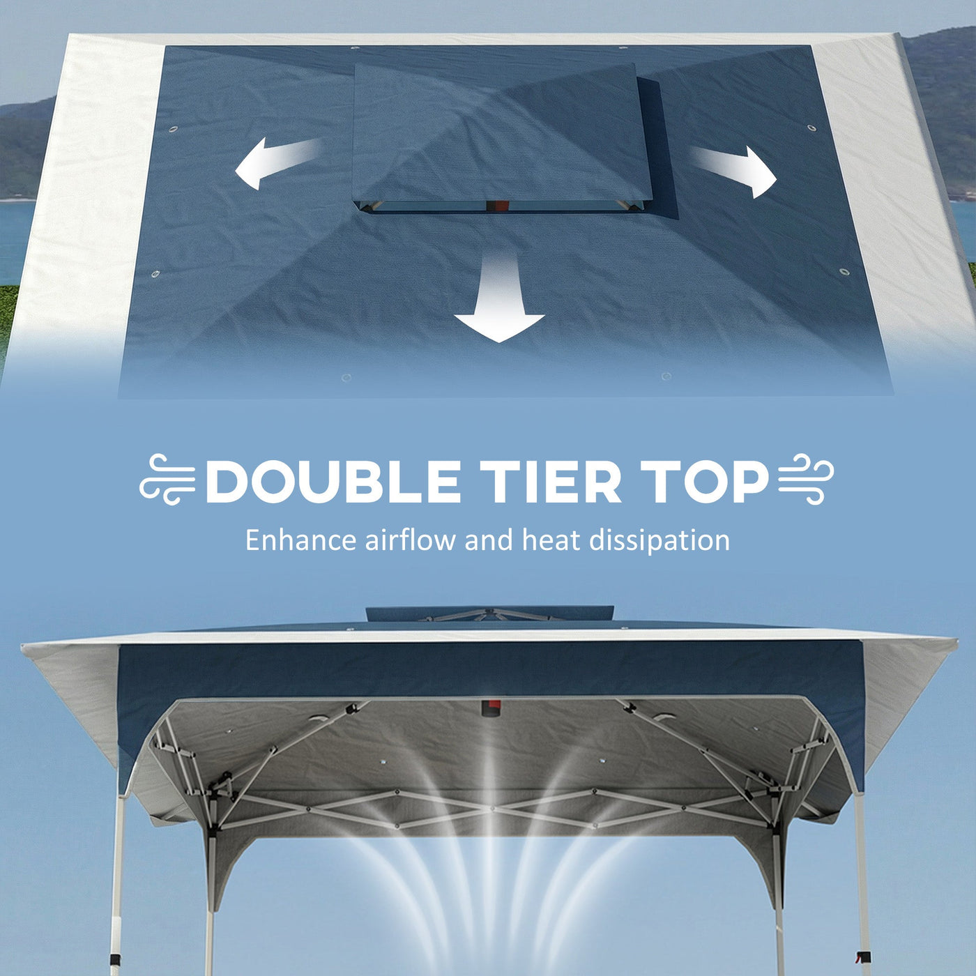 Outsunny 3.5 x 3.5 m Pop Up Gazebo with One-Push Setup, UPF50+ Double Tier Garden Party Tent Marquee with Carry Bag, Blue - Blue