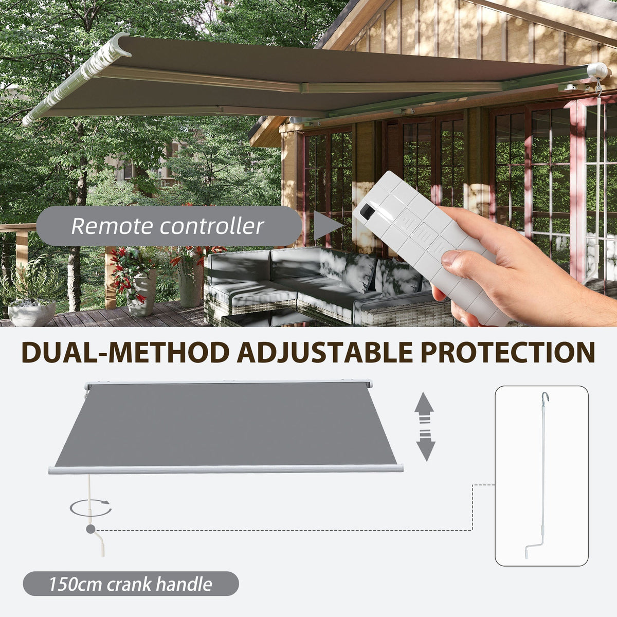 Outsunny 4x3m Full Cassette Electric/Manual Retractable Awning with Remote Controller, Sun Canopies for Patio Door Window with Remote Controller, Grey - Grey