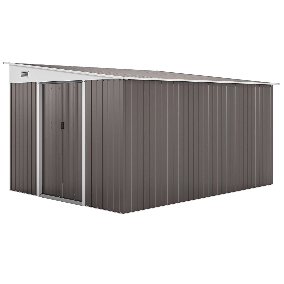 Outsunny 11.3 x 9.2ft Lean to Metal Garden Shed, Outdoor Galvanised Tool Storage House with Double Sliding Doors and 2 Air Vents, Grey - Grey