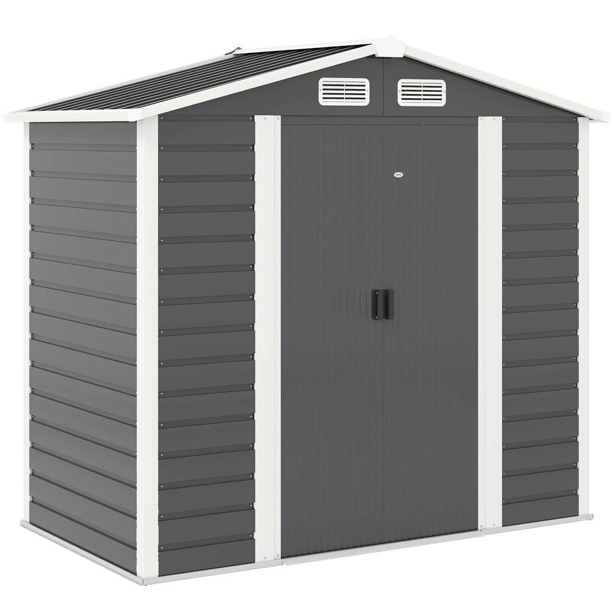 Outsunny 7 x 4ft Garden Shed, Easy to Assemble, Upgraded Galvanised Steel Frame with Foundation Kit, Double Doors with Lock, Outdoor Metal Shed with Vents and Gloves, Garden Storage Shed, Dark Grey - Dark Grey