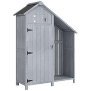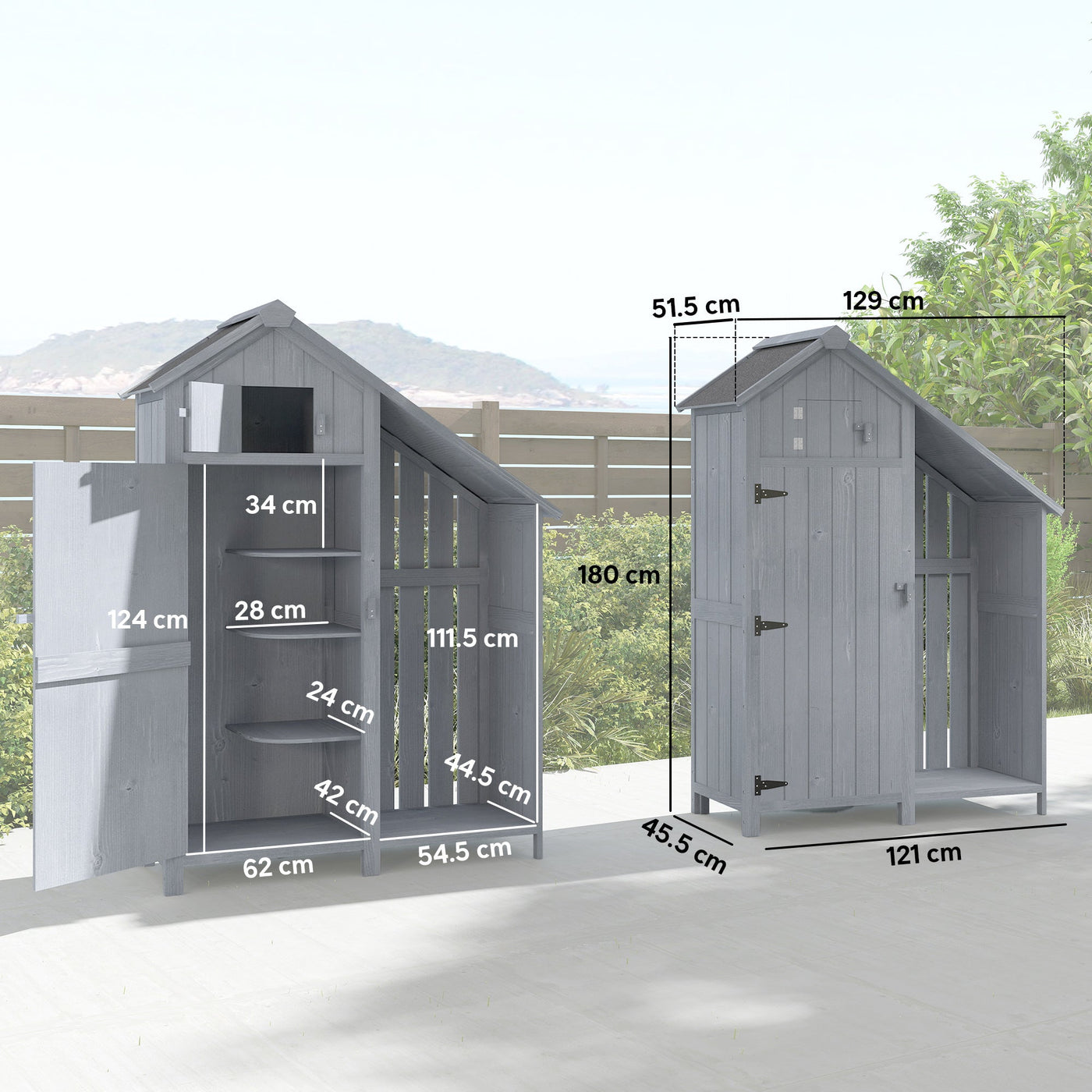 Outsunny Garden Outdoor Storage Shed 3 Shelves Tilt Roof w/ Firewood Rack Log Carrier, 129L x 51.5W x 180H cm - Grey and Black