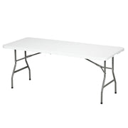 Outsunny Folding Garden Table, 180 x 75cm Rectangular HDPE Outdoor Picnic Table for 6, Metal Frame for Patio, Park, White - White