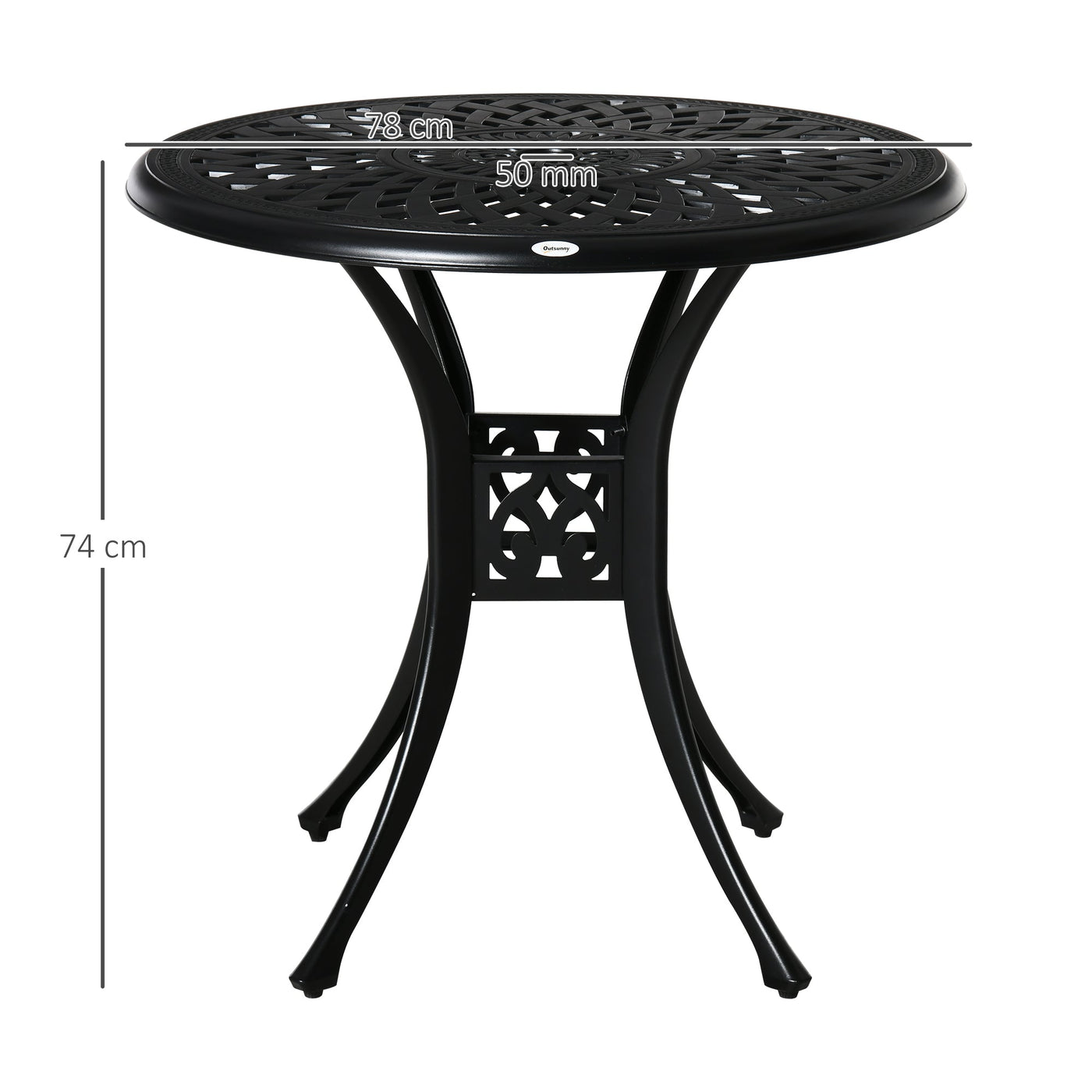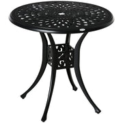 Outsunny 78 cm Round Garden Dining Table with Parasol Hole Antique Cast Aluminium Outdoor Table Only, Black - Black