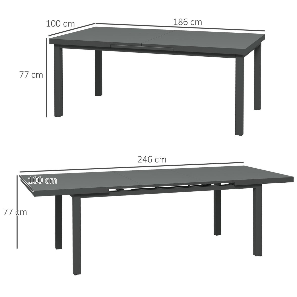 Outsunny Aluminium Garden Table for 6-8, 246 cm Extending Outdoor Dining Table Rectangle for Patio, Balcony - Charcoal Grey - Charcoal grey