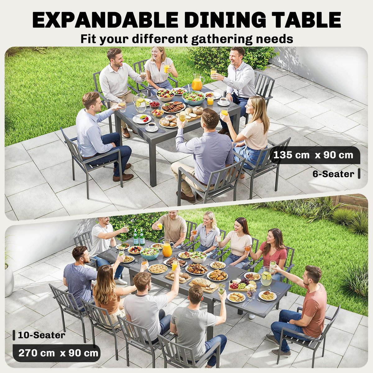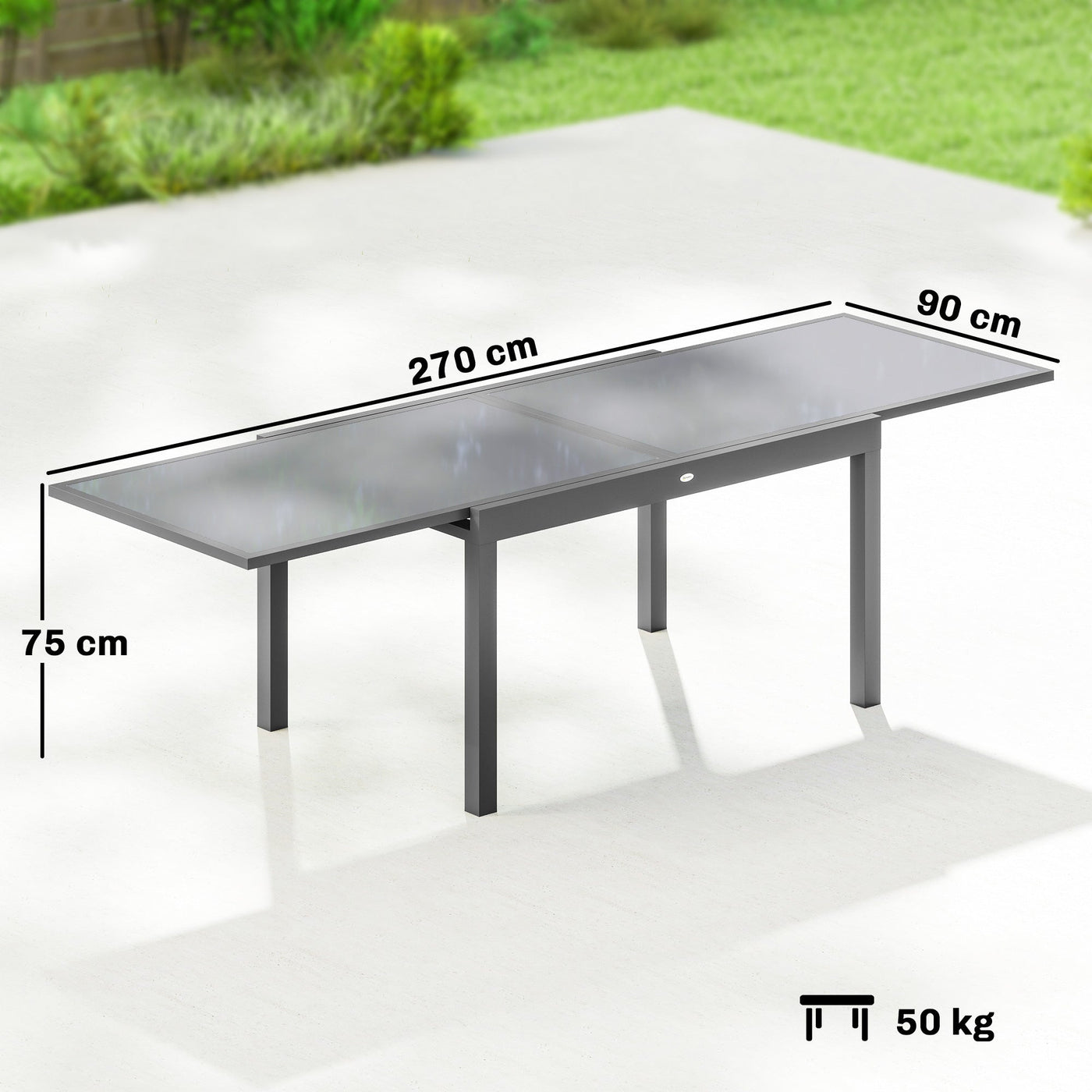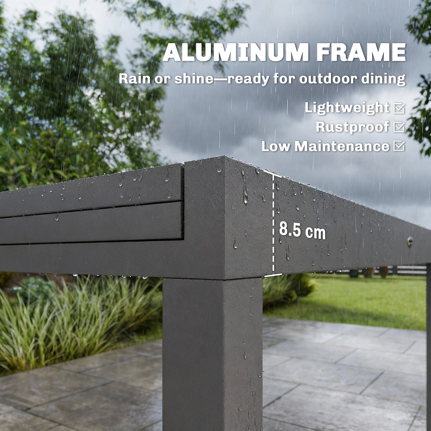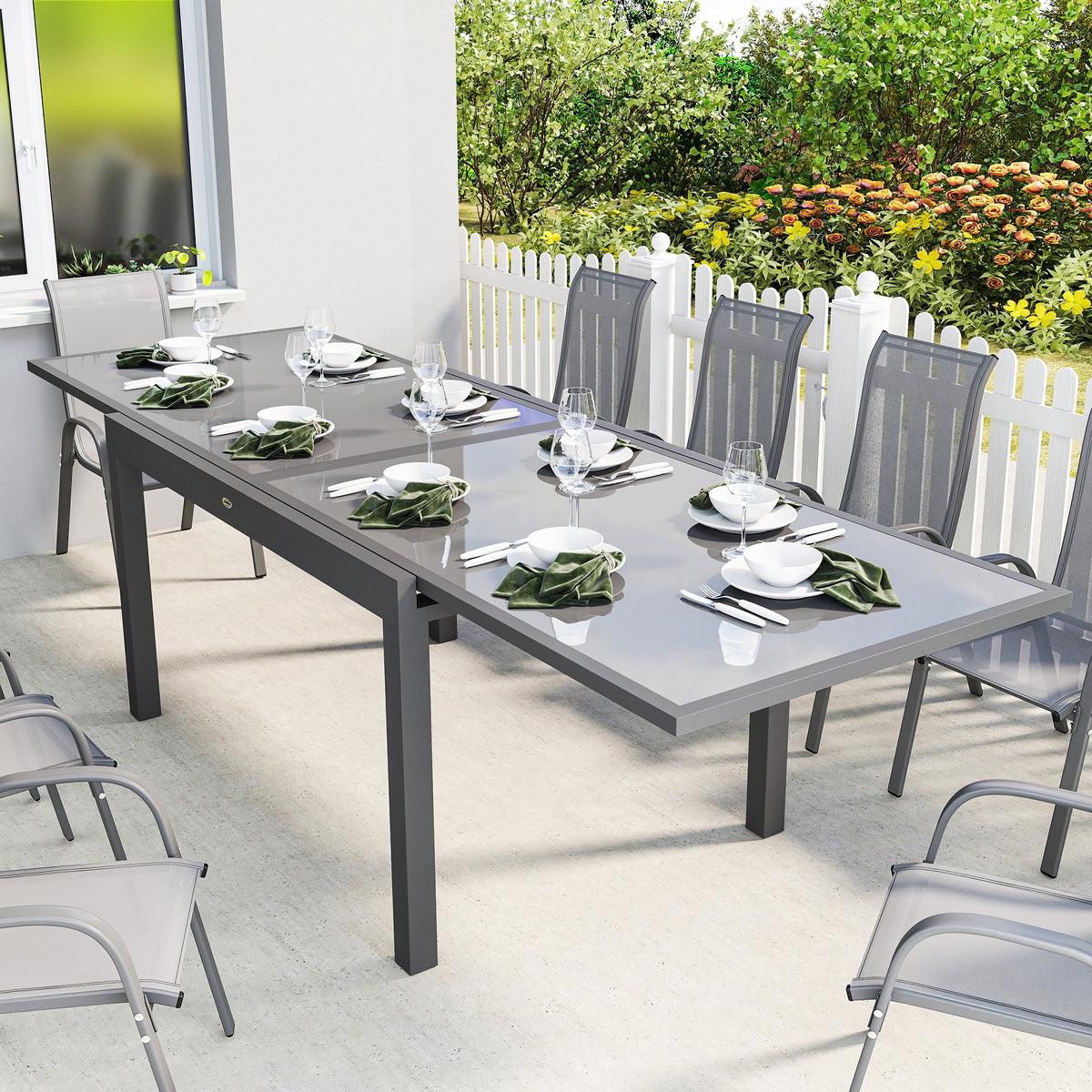 Outsunny Extending Garden Table for 6-10, Aluminium Outdoor Dining Table with Tempered Glass Top, Grey - Grey