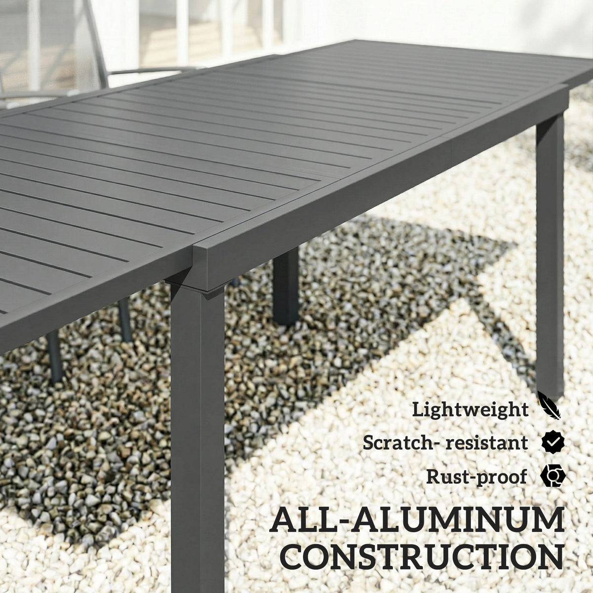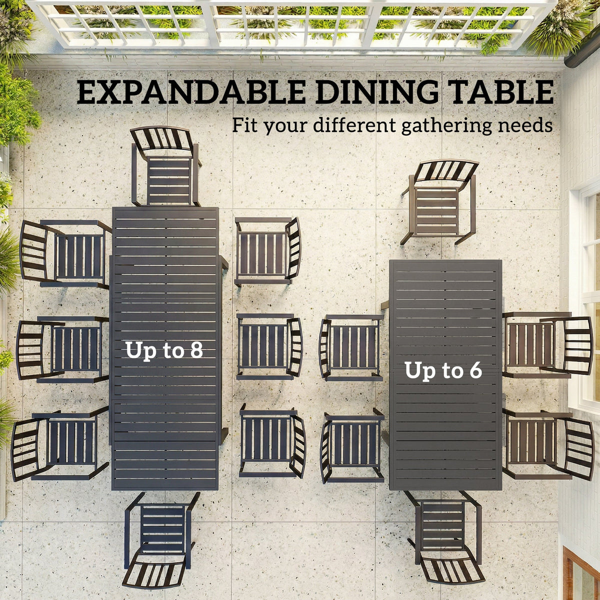 Outsunny Extending Garden Table for 6-8 People, Full Aluminium Outdoor Dining Table with Slatted Top, Dark Grey - Dark Grey